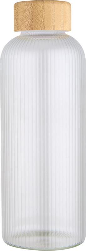 Garrafa de vidro borossilicato com tampa de bambu. A garrafa apresenta um design exclusivo rugoso no interior e um exterior liso, ideal para imprimir um logótipo. O bambu utilizado é proveniente de fontes sustentáveis, com respeito à responsabilidade ambiental e social. Apresentada numa caixa de presente de cartão reciclado. Capacidade volumétrica: 650 ml.