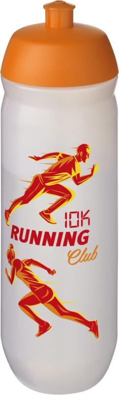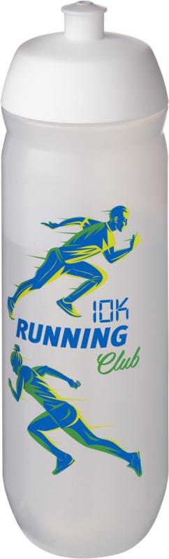 Garrafa desportiva de parede simples com tampa fixa de enroscar. Produzida em plástico MDPE flexível, esta garrafa maleável é perfeita para ambientes desportivos. Capacidade volumétrica de 750 ml. Fabricada no Reino Unido. Sem BPA.