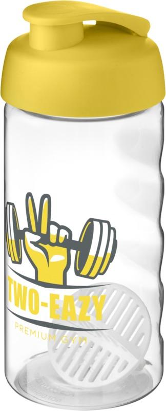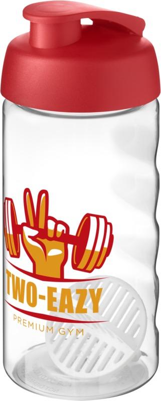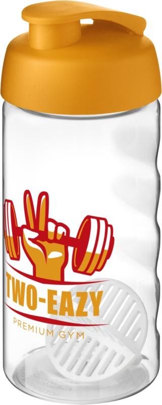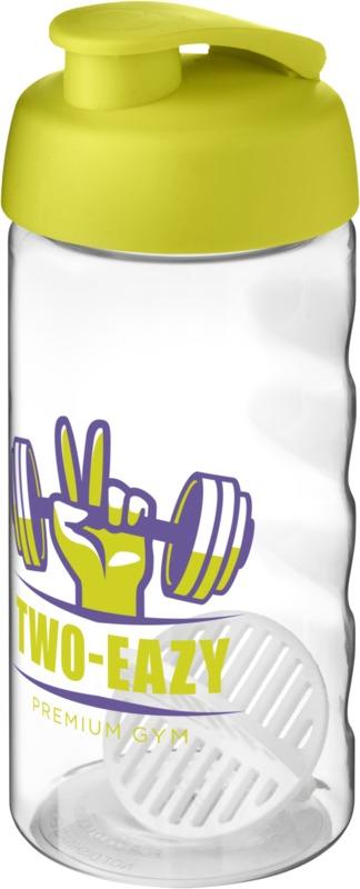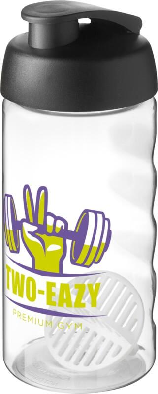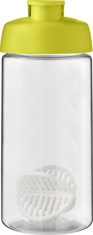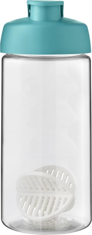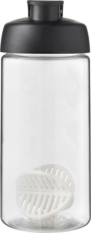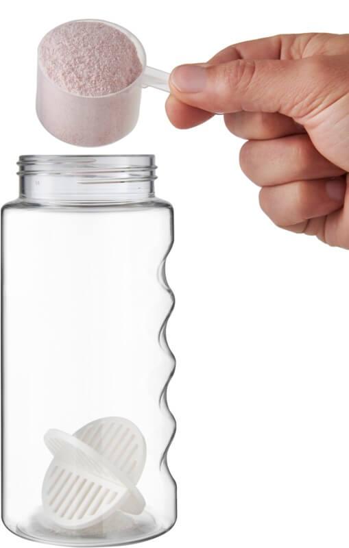 Garrafa desportiva de parede simples com bola misturadora para a mistura suave de batidos de proteína. Possui uma tampa à prova de fuga com fecho flip e pegas para os dedos. Capacidade volumétrica de 500 ml. Fabricado no Reino Unido. Embalado num saco de compostagem doméstica. Sem BPA.