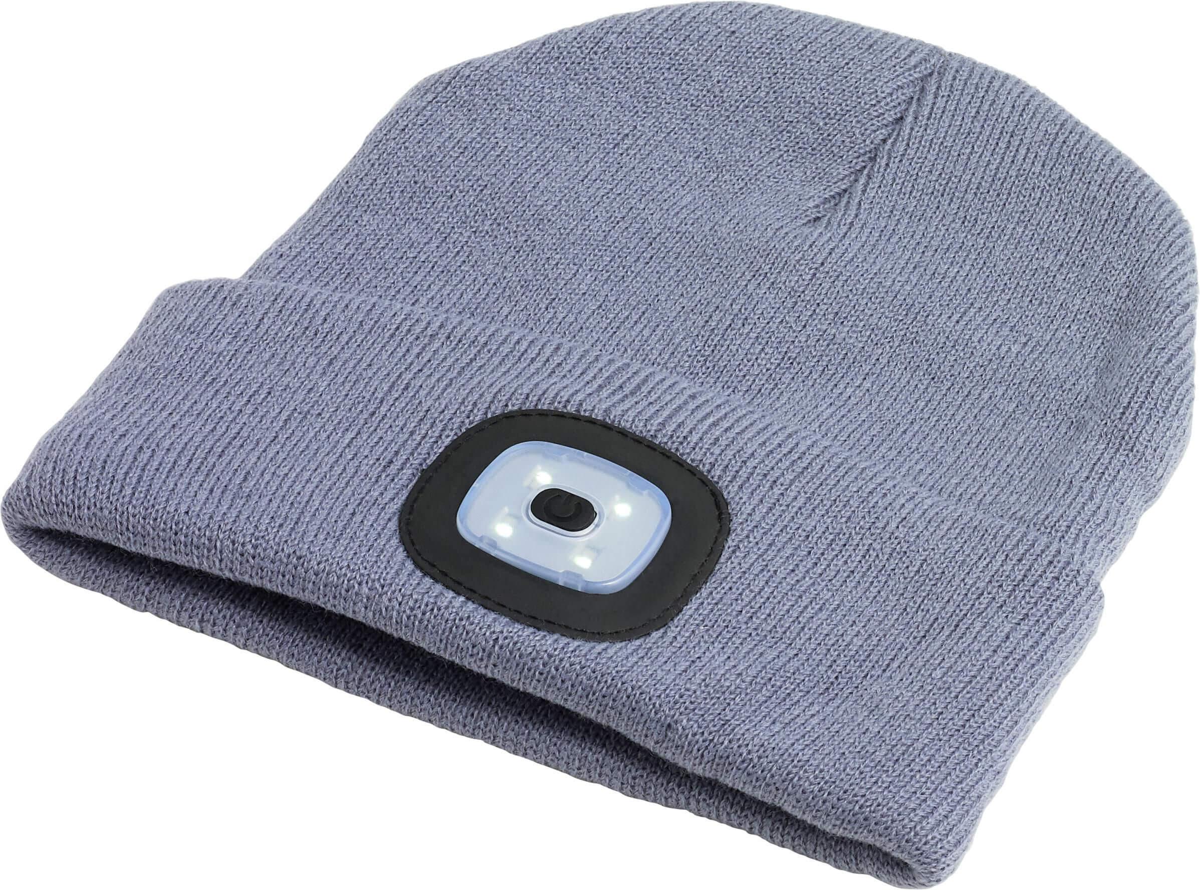 Gorro acrílico com luz COB com luz branca e três configurações de brilho. Pilhas incluídas.
