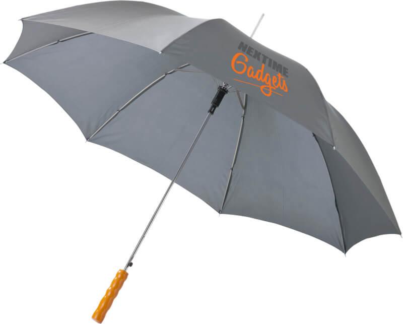 Guarda-chuva Lisa 23″ é um verdadeiro bestseller. Graças ao sistema automático, o guarda-chuva pode ser aberto rapidamente. Tem uma haste e varetas metálicas, e um cabo de madeira que dá ao guarda-chuva um aspecto clássico. O guarda-chuva oferece muitas possibilidades de adicionar uma mensagem ou logótipo promocional. Além disto, o guarda-chuva Lisa está disponível numa variedade de cores ou esquemas de cores.