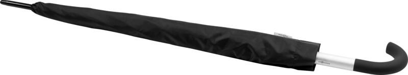 Guarda-chuva de modelo exclusivo com função de abertura automática. Haste e varetas de metal. Peça especial para pendurar o guarda-chuva na mesa. Pega revestida a borracha com pormenor em alumínio. Bolsa de cor a condizer.