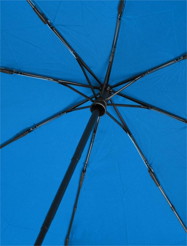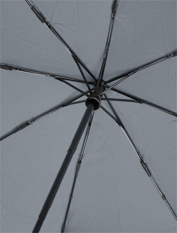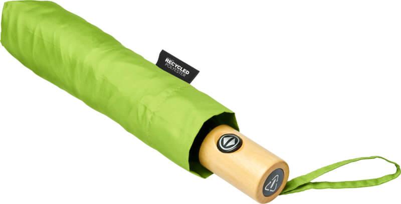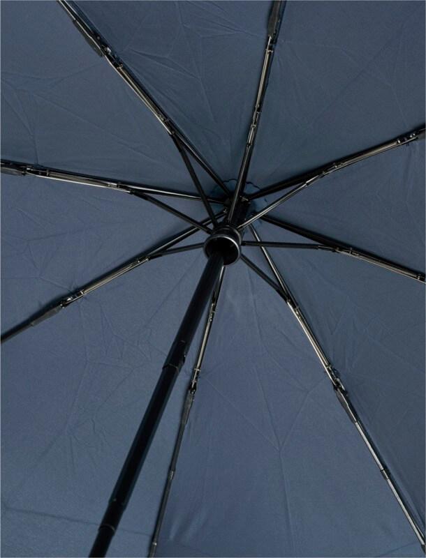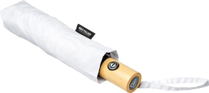 Guarda-chuva dobrável automático com uma cobertura em tecido pongé de poliéster em PET reciclado. Haste robusta em metal, uma estrutura de alta qualidade com varetas em fibra de vidro que oferece a máxima flexibilidade em condições de vento. Fornecido com uma bolsa e cabe facilmente numa mala de mão ou mochila para um transporte cómodo. Em conjunto com o cabo de madeira e a cobertura em tecido pongé de poliéster em PET reciclado, oferece uma escolha sustentável. Disponível numa grande variedade de cores contemporâneas com uma grande área de gravação em cada um dos painéis.