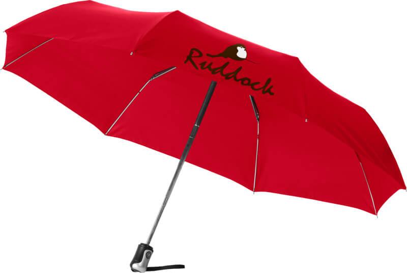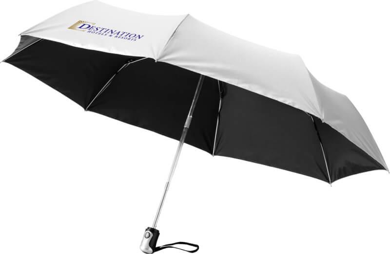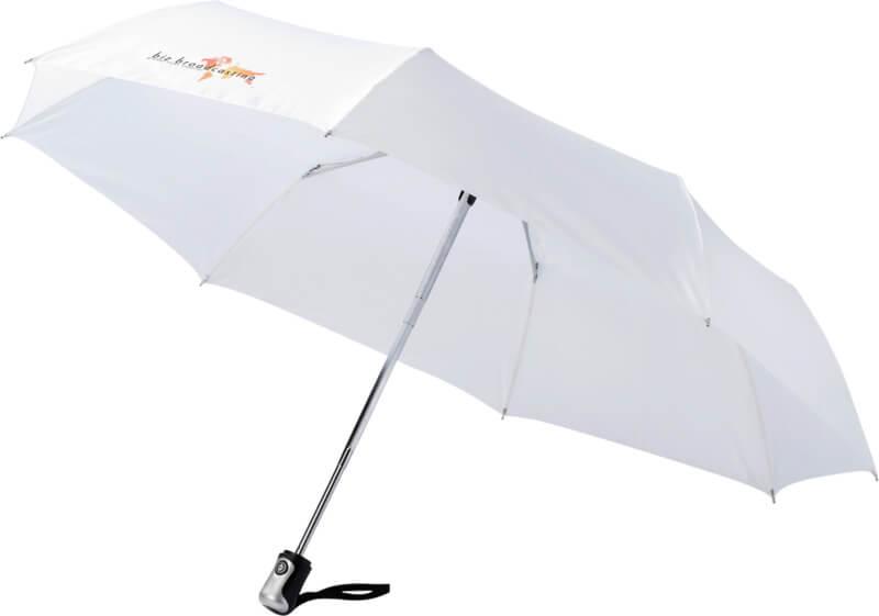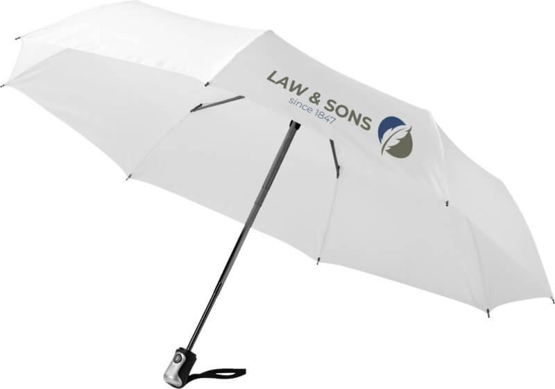 Guarda-chuva Alex 21,5″ é prático e com todos os confortos modernos. Graças ao sistema automático, o guarda-chuva pode ser aberto e fechado rapidamente. Com apenas um clique, a chuva não o incomodará mais. O prático guarda-chuva tem uma tela de poliéster, estrutura e costelas de metal e um cabo de plástico que cabe confortavelmente em qualquer mão. Graças ao seu tamanho, quando dobrado, caberá perfeitamente num saco (de mão). Além disso, oferece múltiplas opções para colocar logótipos ou outras mensagens e está disponível em várias cores.