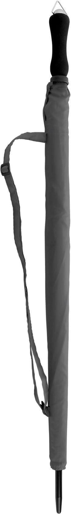 Guarda-chuva manual de 8 painéis feito de poliéster (210 T). Cabo direito em EVA, haste e costelas em fibra de vidro e fixação por velcro. Com tampa e alça de ombro a condizer.