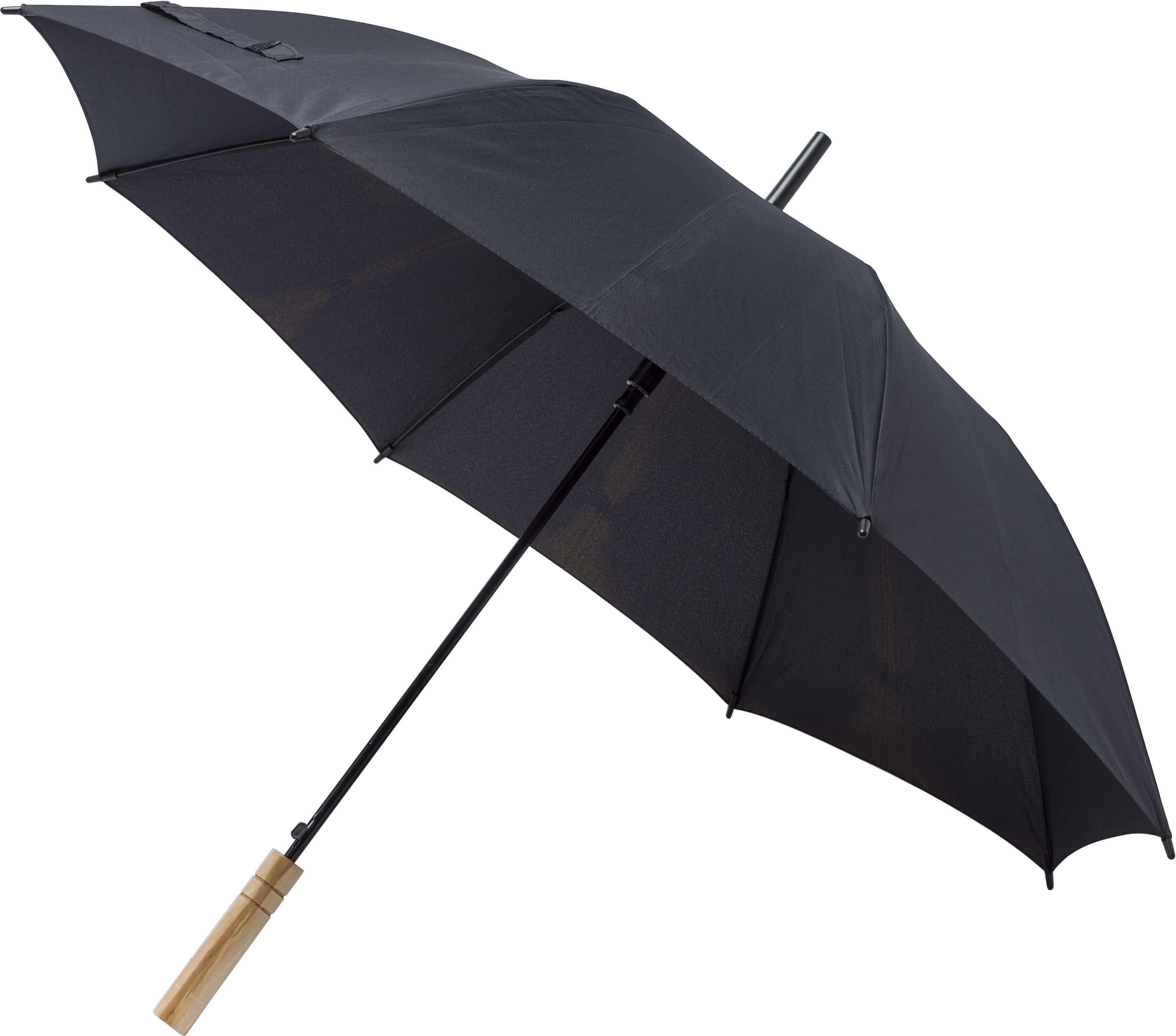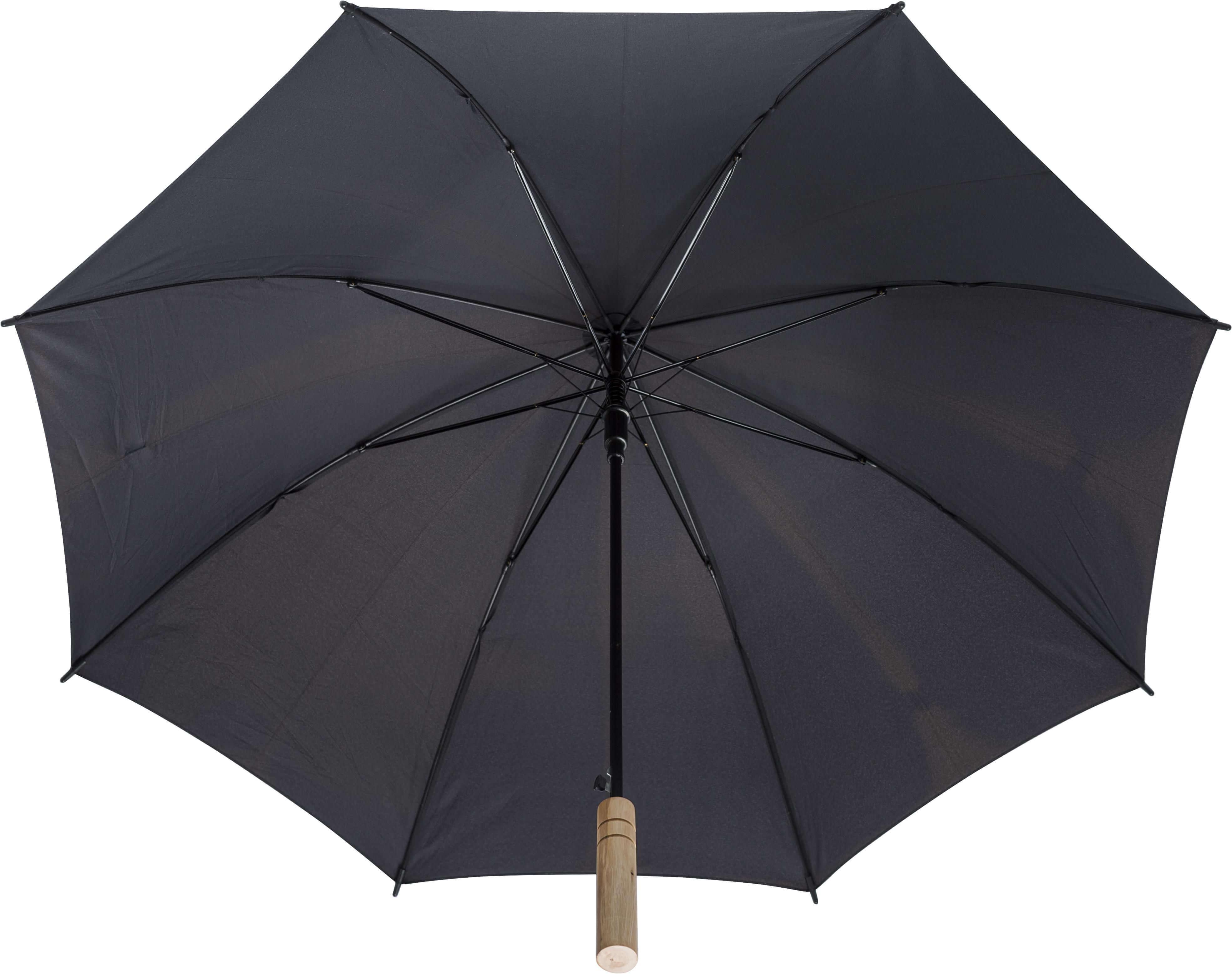 Guarda-chuva automático rPET pongee (190T) com oito painéis. Cabo de bambu e estrutura metálica.