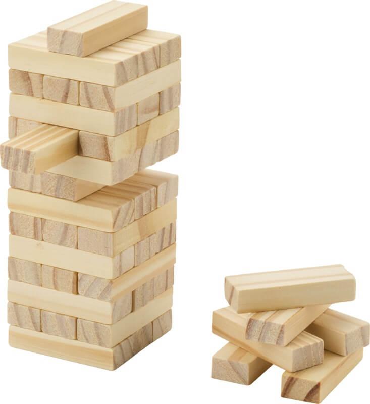 Leve diversão, emoção e uma pitada de suspense para qualquer tipo de encontro com o jogo de equilíbrio de torre de madeira “Jumble”! Perfeito para noites de jogos em família, festas ou um dia descontraído com amigos, este jogo clássico de empilhar blocos de madeira desafia os jogadores a retirarem alternadamente os blocos e empilhá-los no topo, sem deixarem a torre cair. Entregue com uma bolsa de algodão.