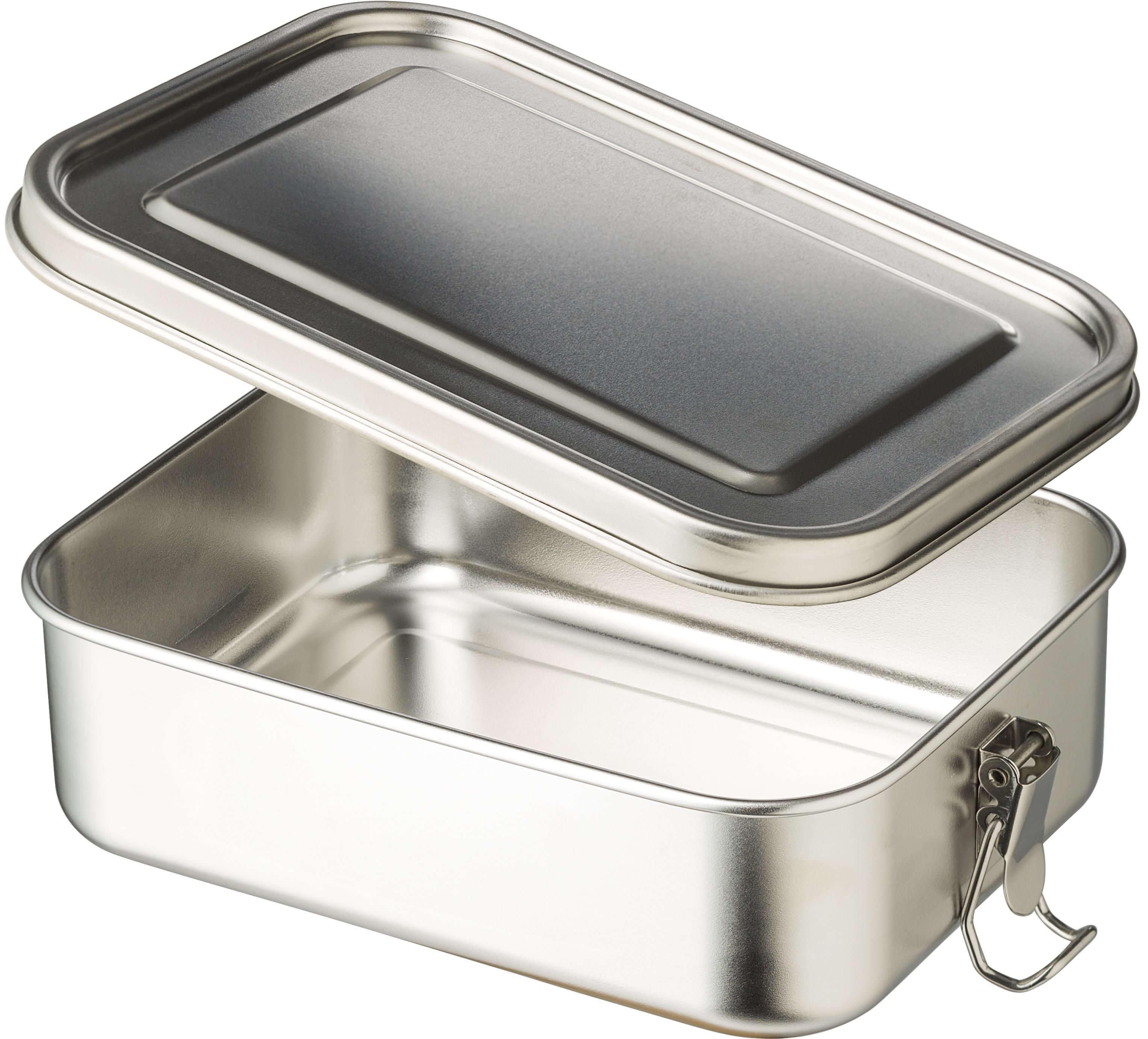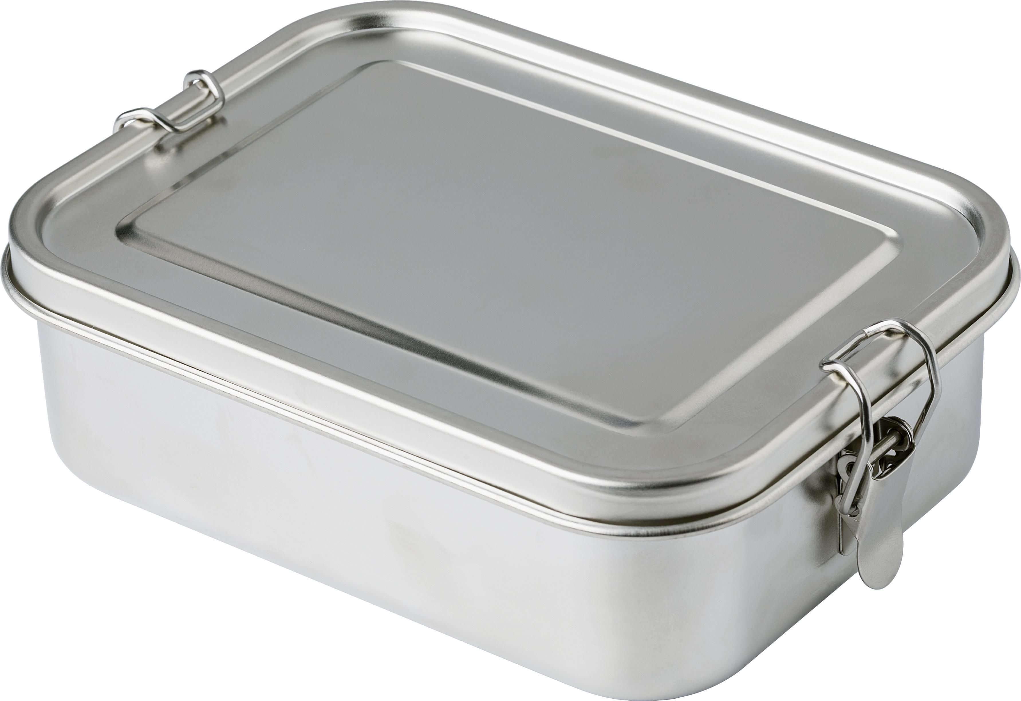 Lancheira em aço inoxidável (s/s304) (1100 ml) com fecho de fivela. Capacidade de 1100 ml. Embalado individualmente numa caixa de cartão castanha.