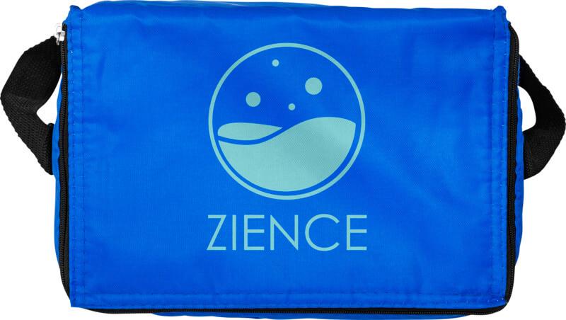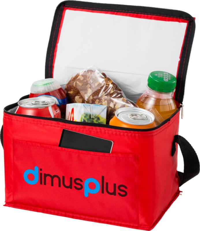 Compartimento principal com fecho com bolso frontal aberto. Alça de ombro ajustável. Revestimento a PEVA isolante. Acessórios não incluídos.