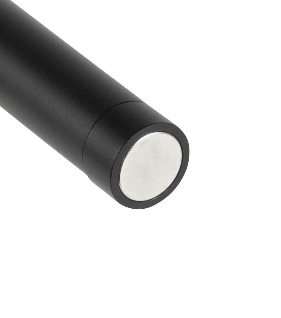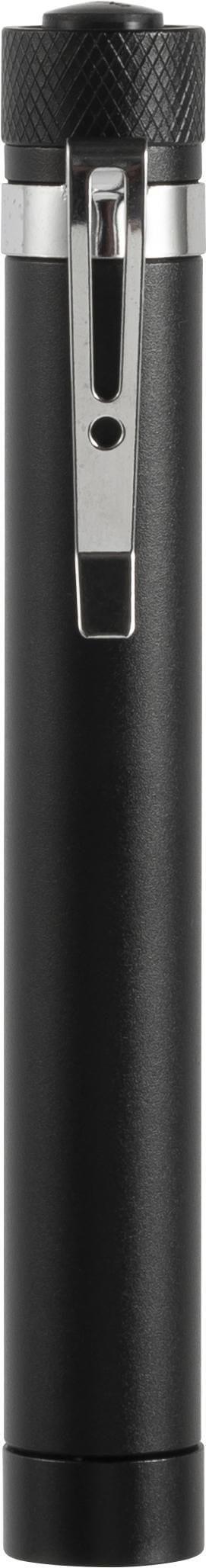 Lanterna COB em alumínio (1W) com íman no fundo e clipe metálico. Pilha incluída.