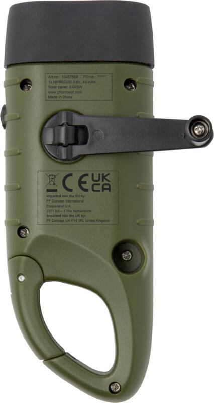 Está cansado de ficar sem energia quando mais precisa dela? Diga adeus a esses momentos frustrantes com a nossa solução de iluminação “Helios”inovadora e descomplicada. Esta lanterna dínamo solar de plástico reciclado possui um mosquetão embutido, permitindo uma fixação fácil em mochilas, cintos ou equipamentos, tornando-a indispensável para acampar ou fazer caminhadas. Com apenas 1 minuto de acionamento manual, você pode desfrutar de uns incríveis 8 minutos de luz. E quando o sol está brilhando, o painel solar aproveita a sua energia, garantindo que a sua fonte de luz esteja sempre pronta. Possui 3 luzes LED com um brilho de 10 000 mcd. Tipo de Bateria: 40 mAh Ni-Mh, 3,6 V. Embalado numa caixa de presente “STAC” proveniente de fontes sustentáveis.