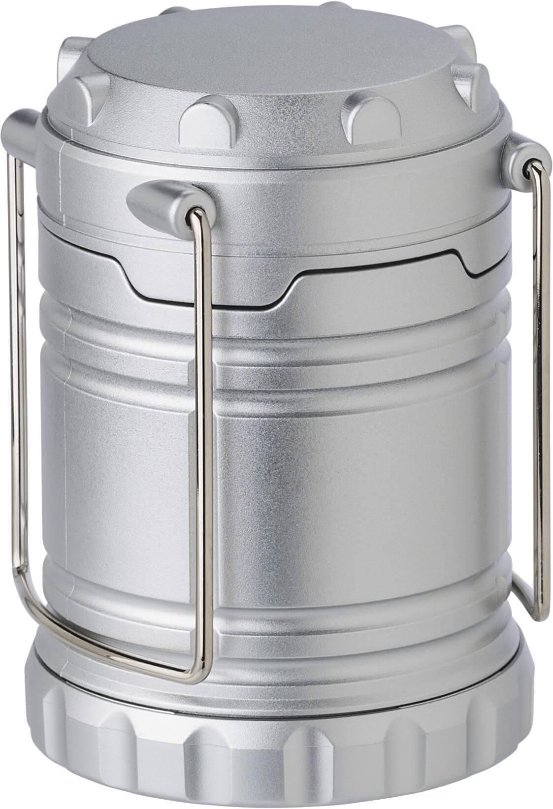 Lanterna para camping em ABS com três faixas COB. A lanterna possui suportes de metal de cada lado. Pilhas incluídas.