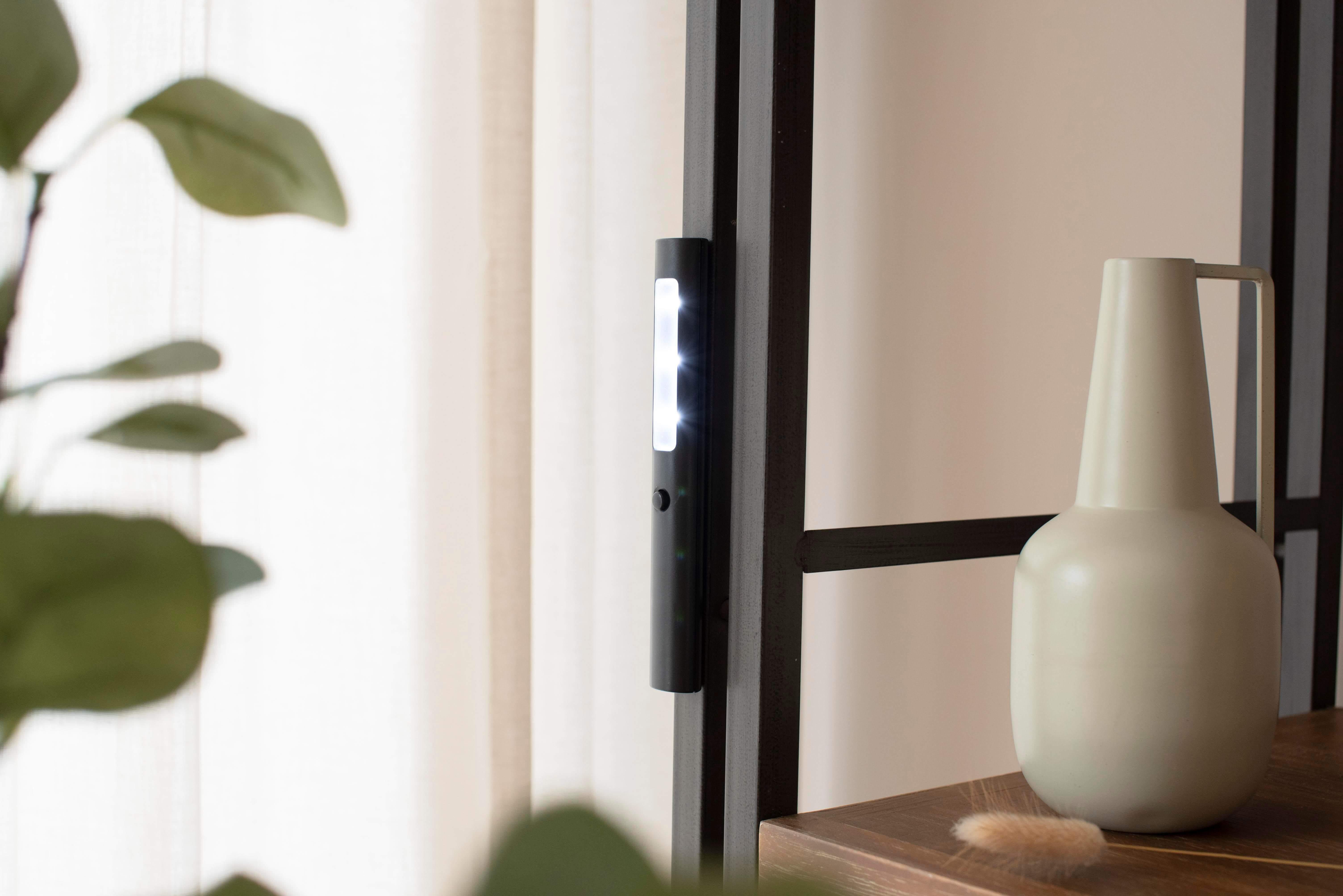 Lanterna ABS com três luzes LED e dois ímans nas costas. Tem duas configurações: intermitente e fixo.