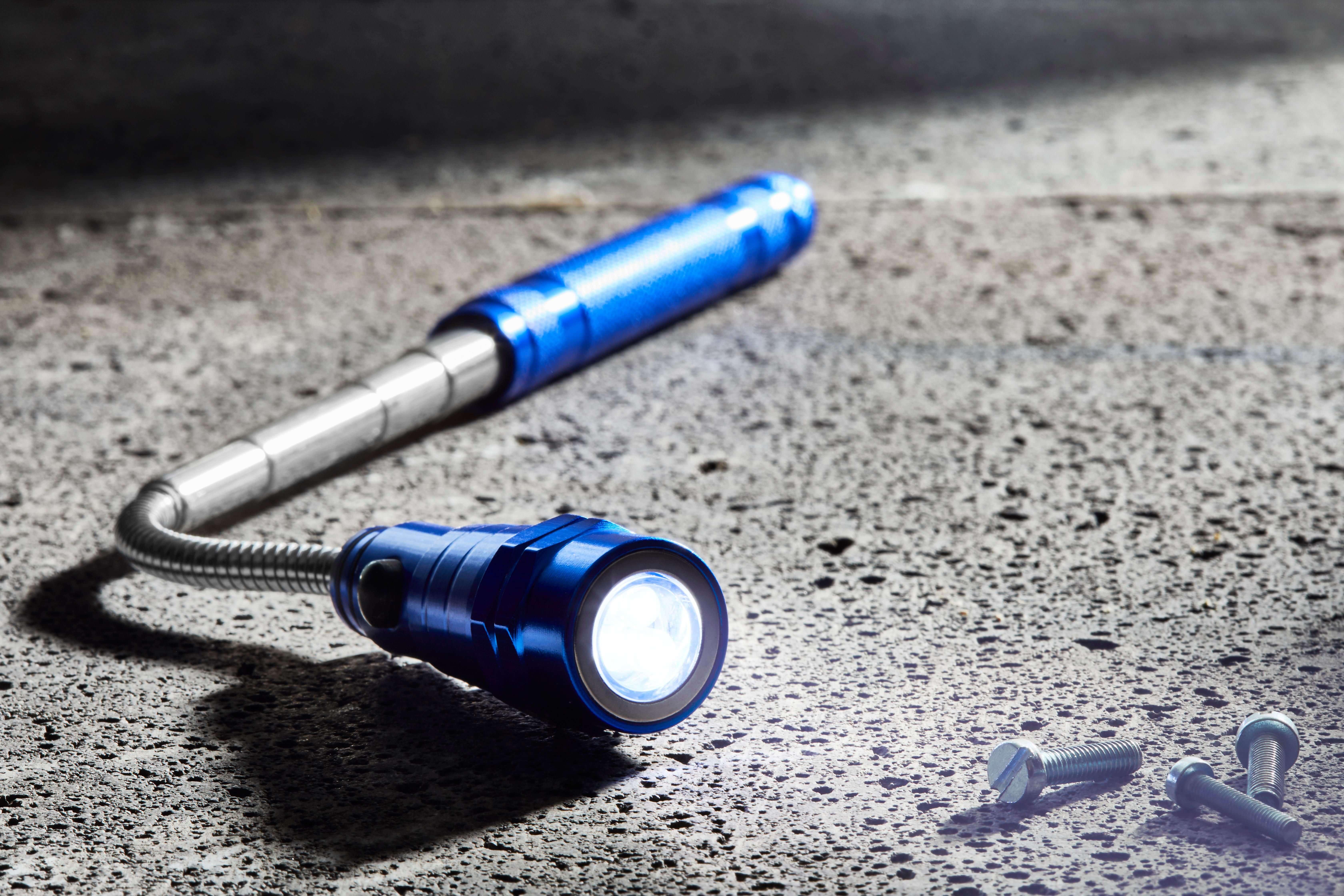 Lanterna teléscopica de metal em cores metálicas e com íman.