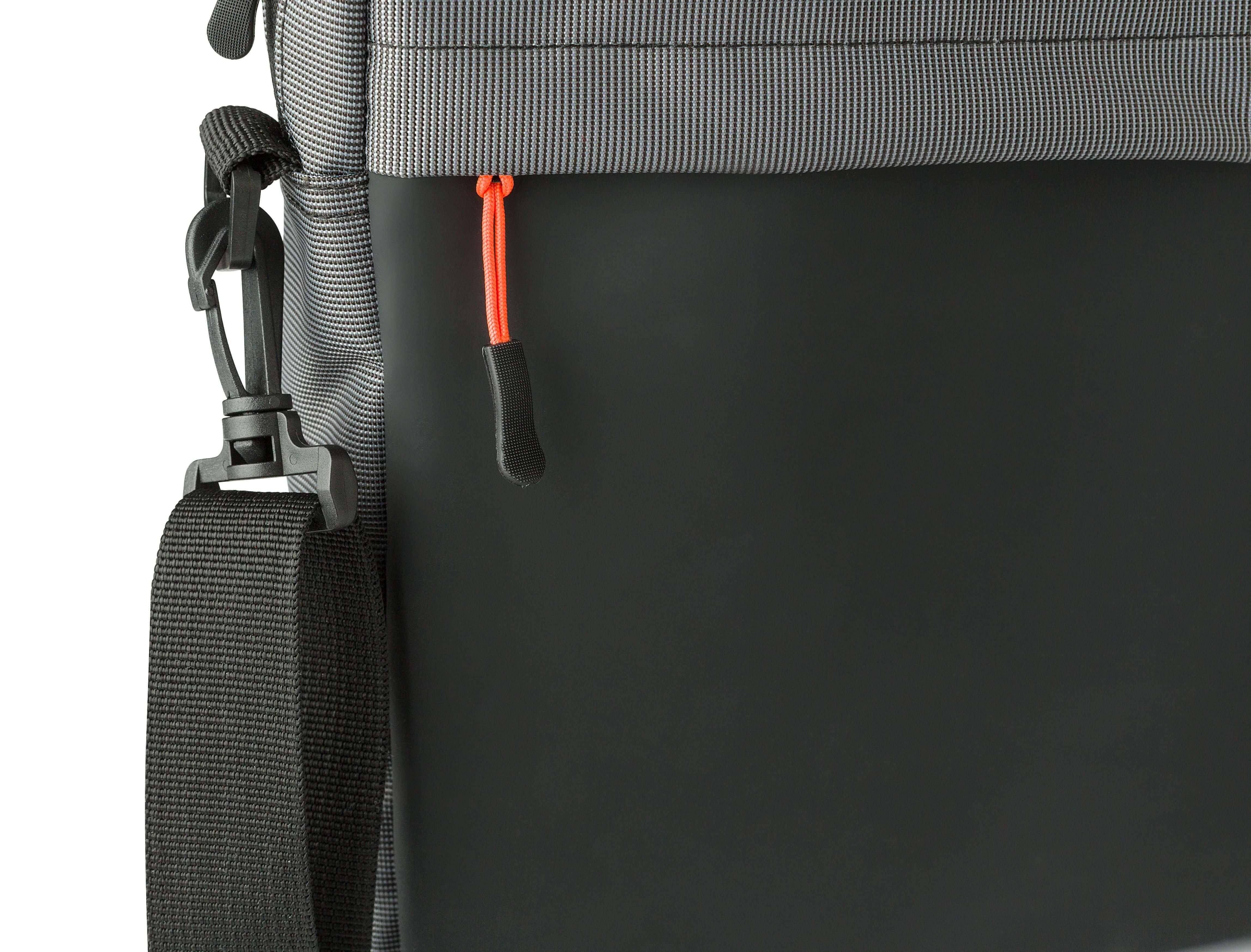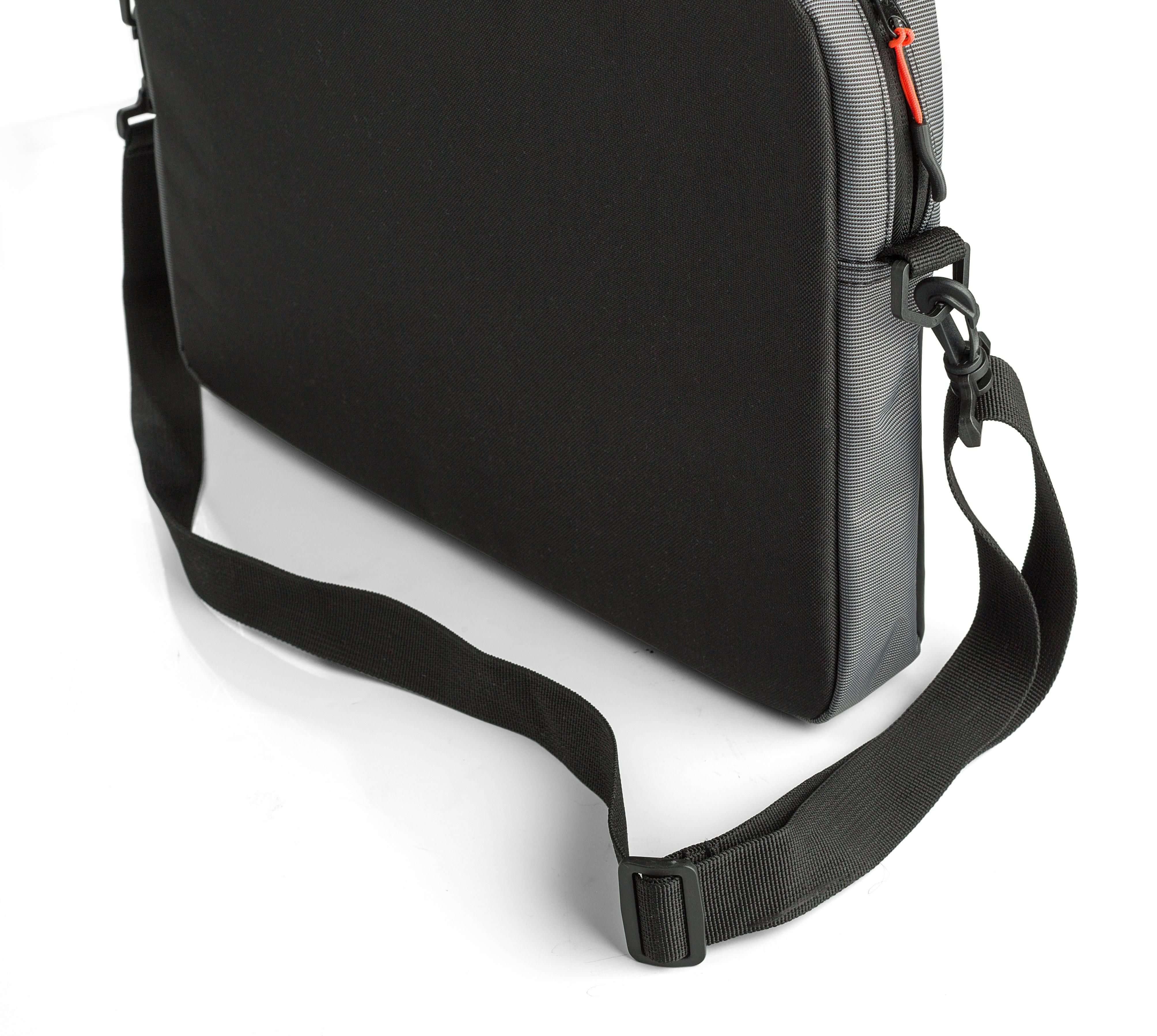 Mala bicolor 500D para computador portátil (15’’). Inclui um grande compartimento acolchoado com fecho de correr, pegas curtas e alça de ombro ajustável.