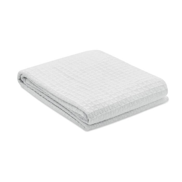 Manta de algodão leve de 300 gr/m² de tecido waffle. Apresentado numa caixa de presente.