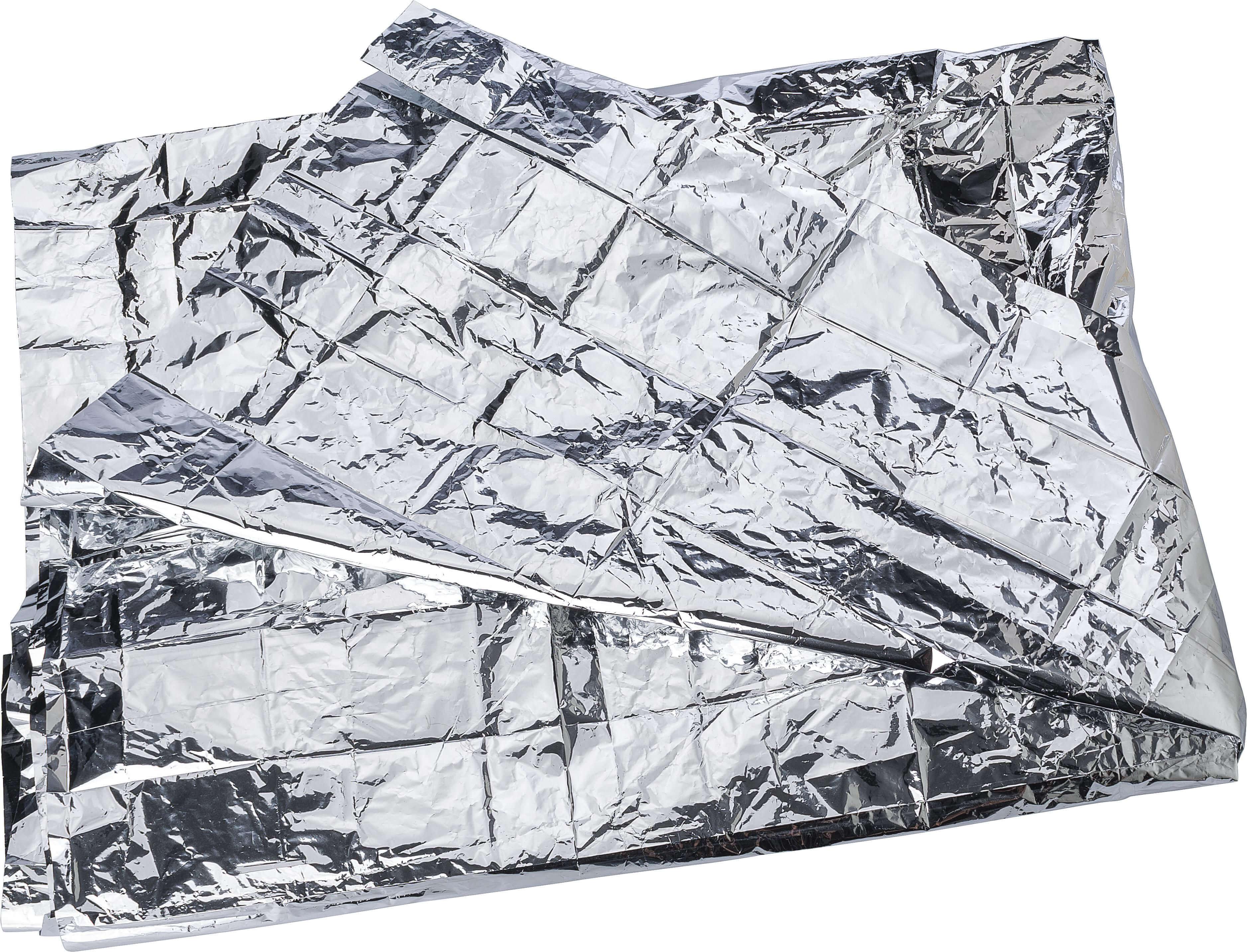 Manta isolante feita de papel de alumínio em saco de plástico. Medidas: 130 x 210 cm.