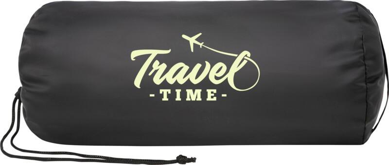 Manta de velo de malha coral RPET ultra-suave certificada GRS. Vem com uma bolsa de transporte RPET 190T com fecho por cordão. Embalado num saco de polietileno reciclado. Tamanho da bolsa: comprimento 37 cm, diâmetro 16 cm.