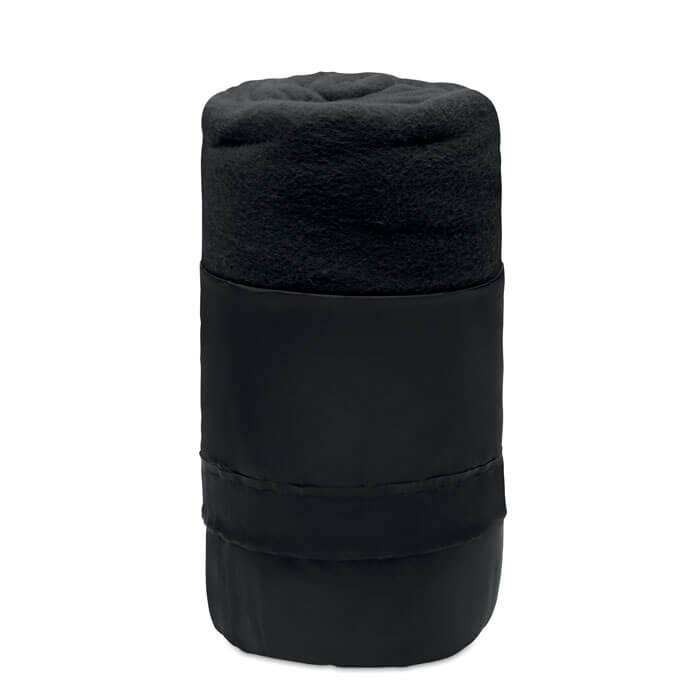 Manta de viagem em RPET numa bolsa de viagem em poliéster RPET. Velo de 180 gr/m².