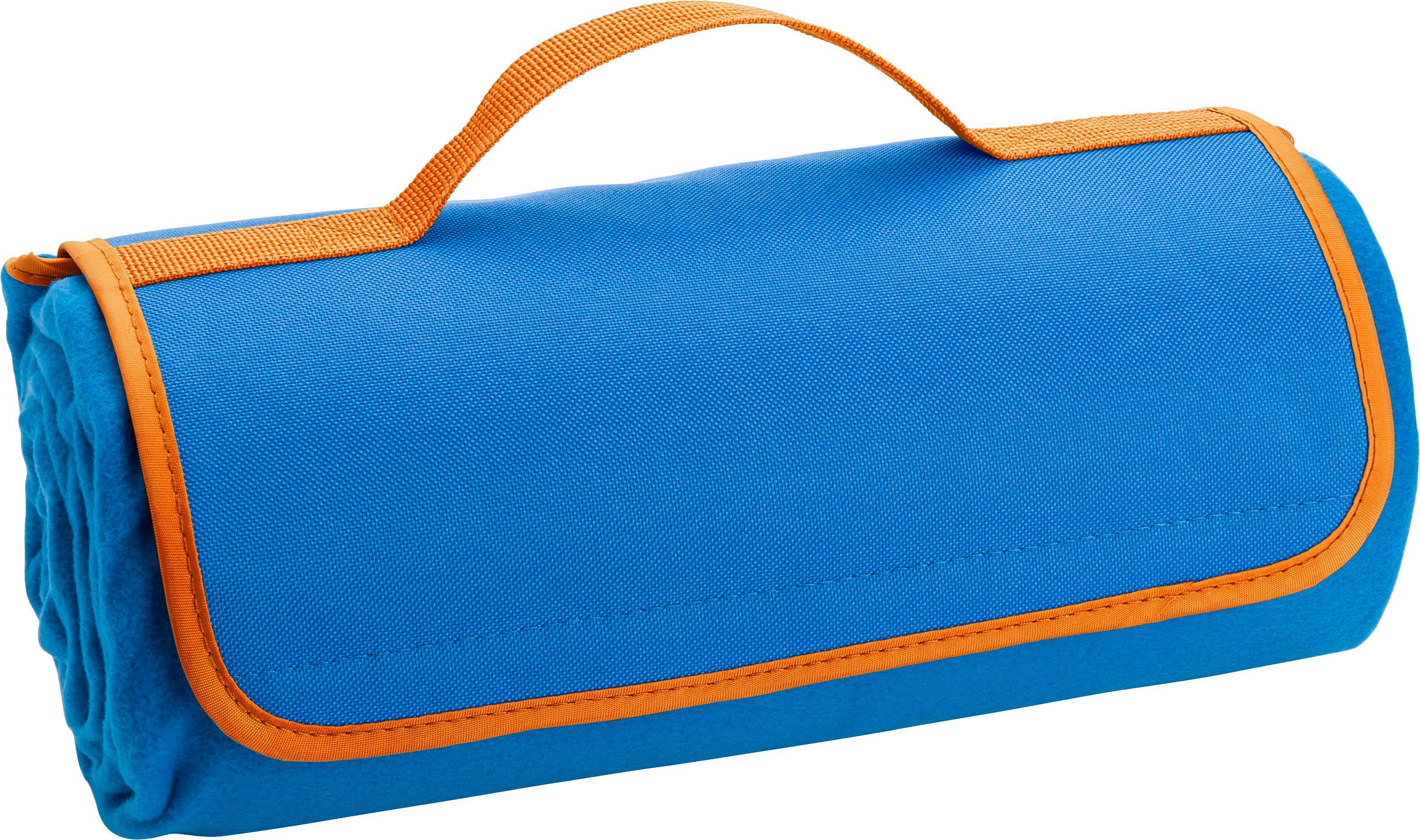 Manta de picnic polar com base impermeável de PEVA e enchimento de espuma. Uma vez dobrado, tem alça para transportá-lo.