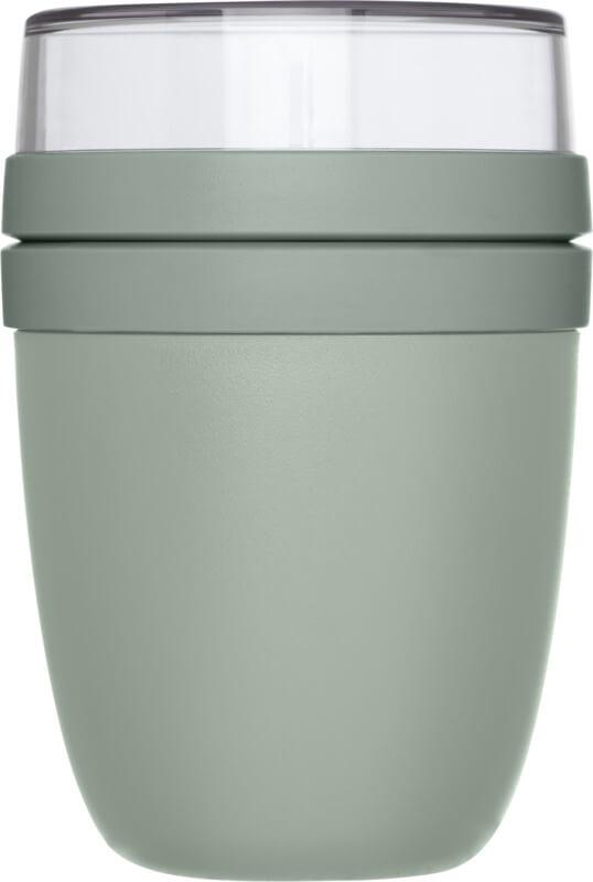 Marmita com dois compartimentos diferentes para manter os diferentes ingredientes separados. Ambos os recipientes têm uma tampa separada e, portanto, permanecem limpos. O teor do recipiente transparente superior é de 200 ml, o que significa que pode conter cerca de 75 gramas de alimentos sólidos. A capacidade do recipiente inferior é de 500 ml. Produzido em material durável e pode ser utilizado no congelador, no micro-ondas (remova a tampa) e na máquina de lavar louça. O recipiente transparente superior não deve ser utilizado no micro-ondas. À prova de vazamento. Sem BPA.