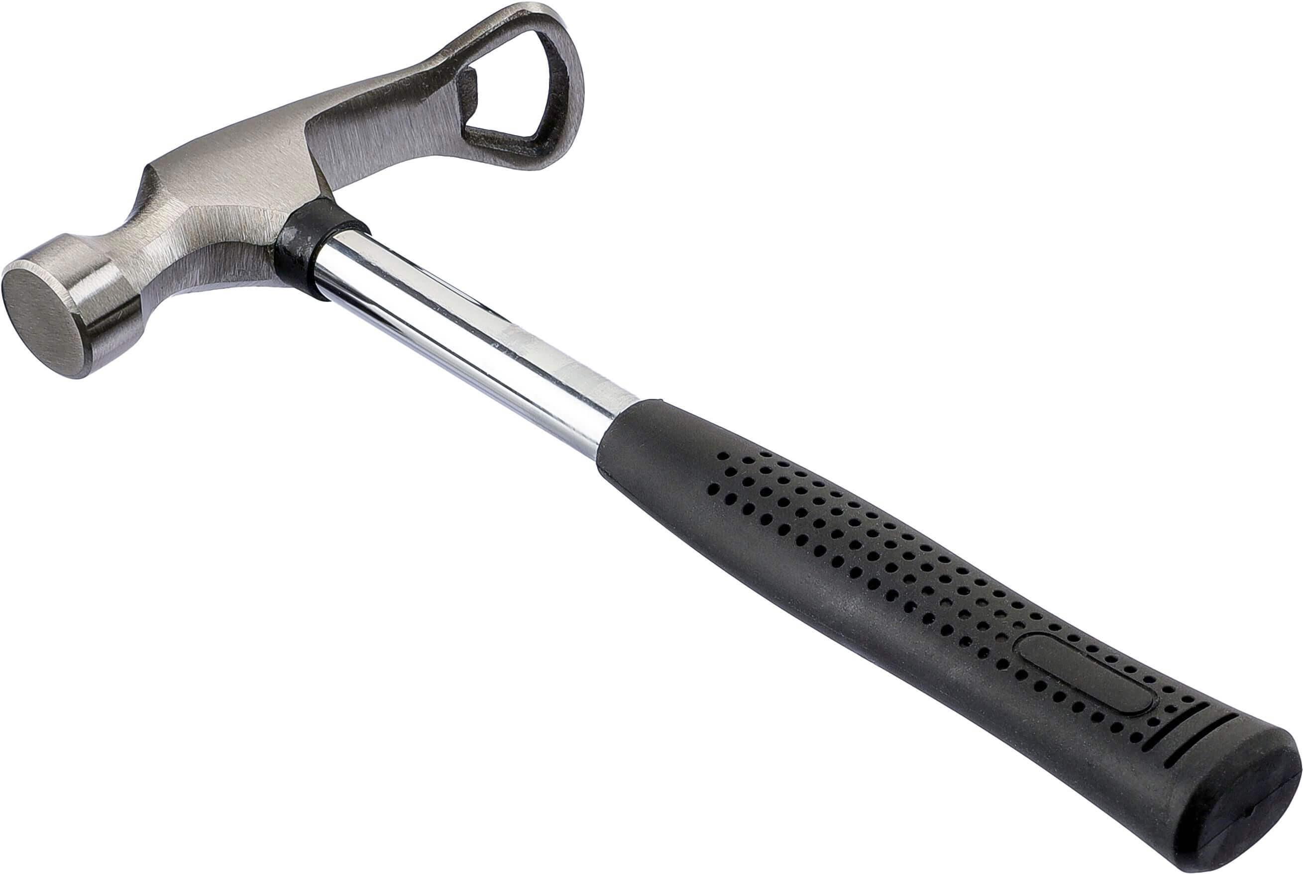 Martelo de aço carbono com abre-cápsulas de garrafas na parte superior. Cabo em PVC.