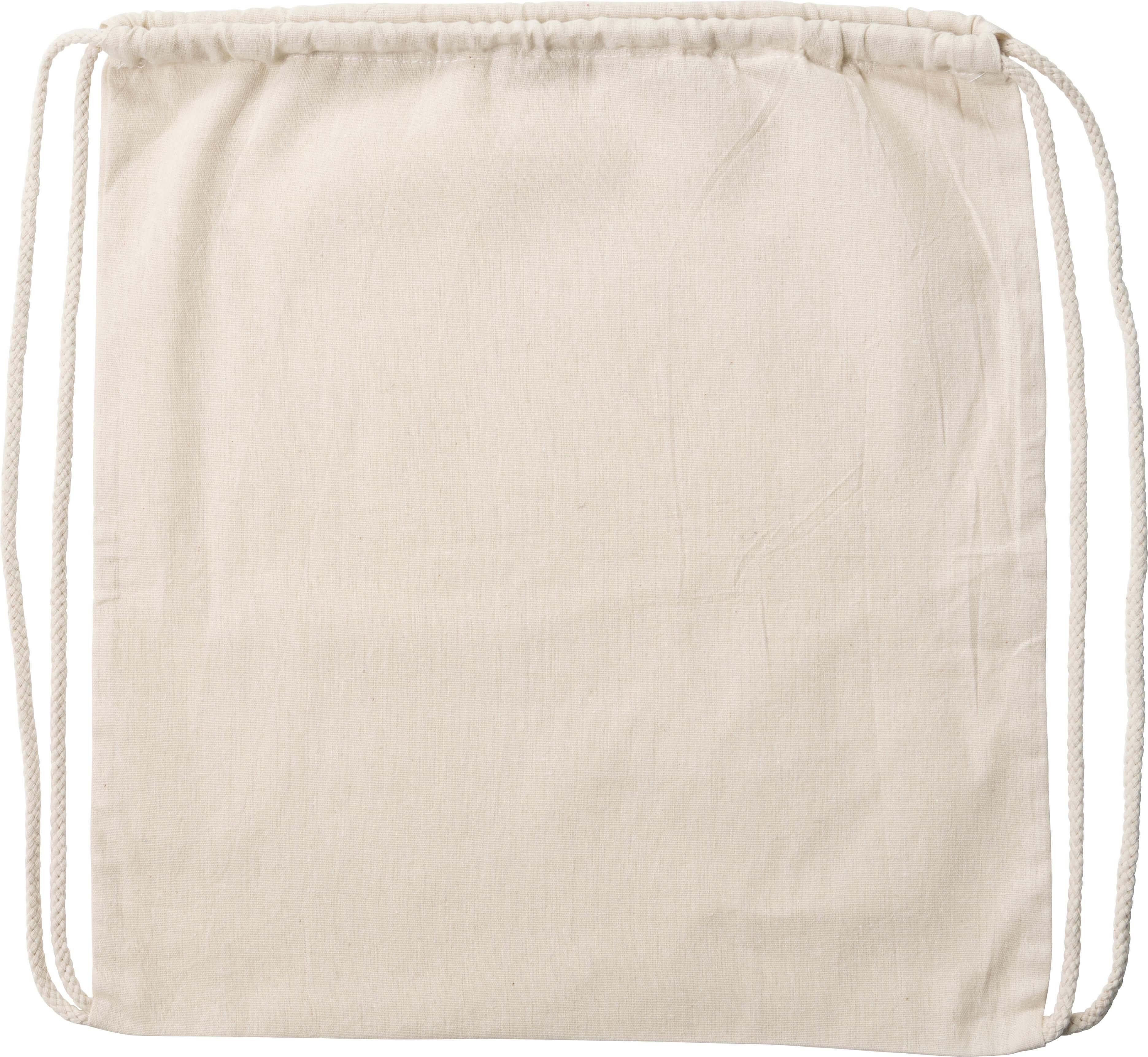 Mochila de algodão (120 gr/m²) com fecho de cordão.
