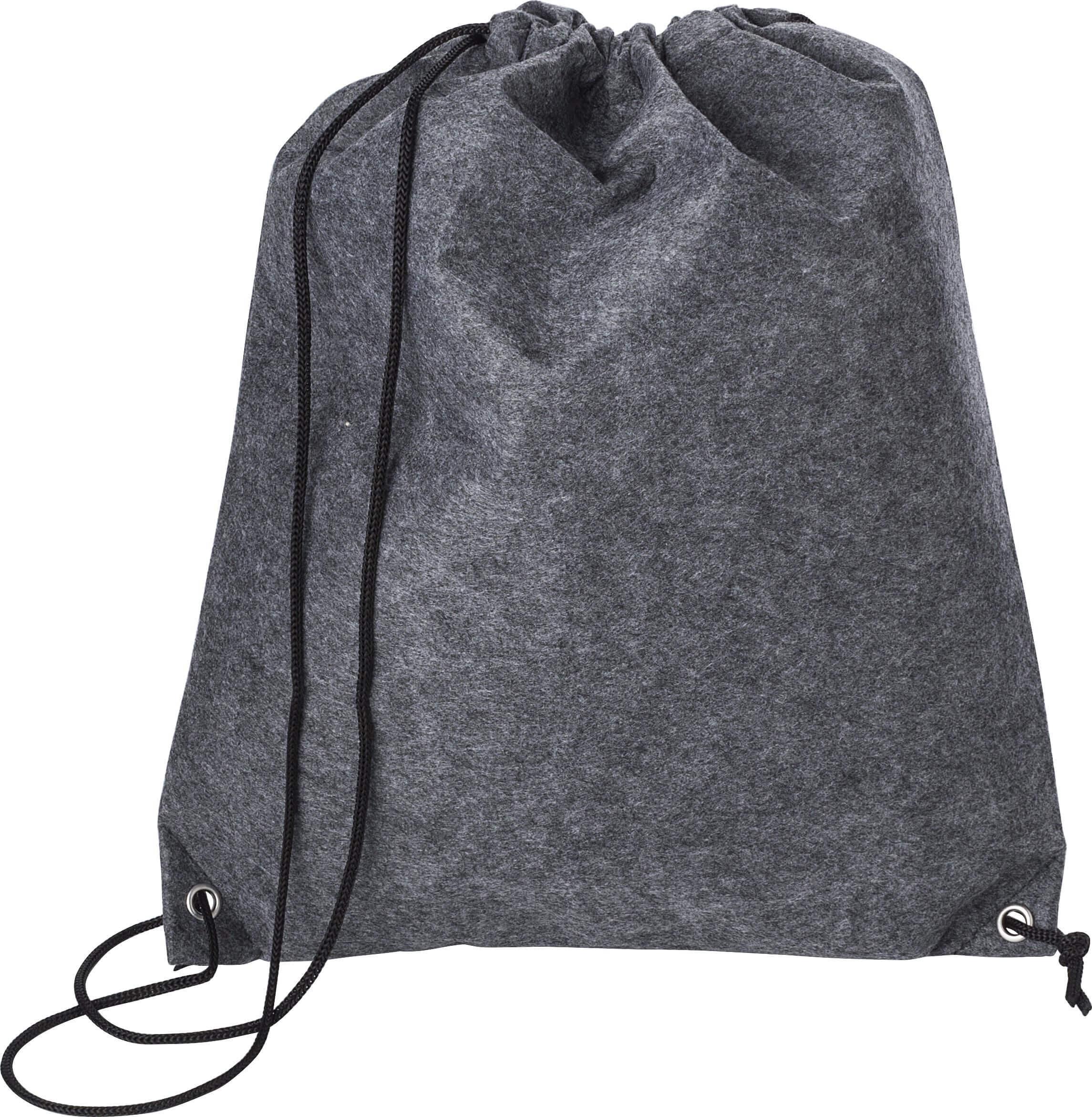 Mochila com cordão em feltro rPET com cantos rígidos.