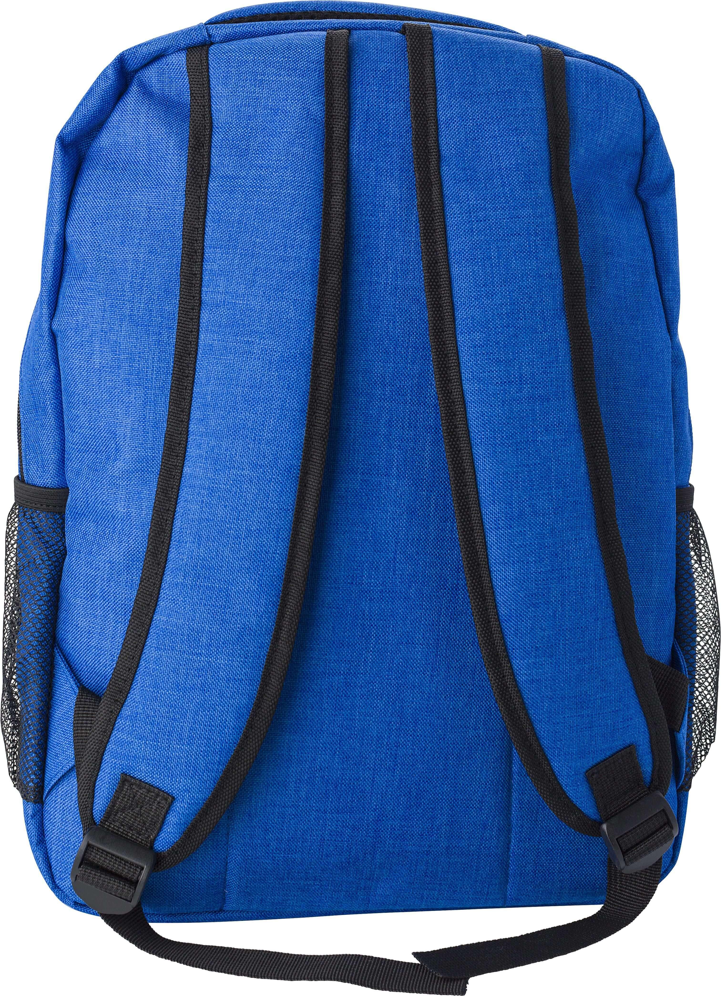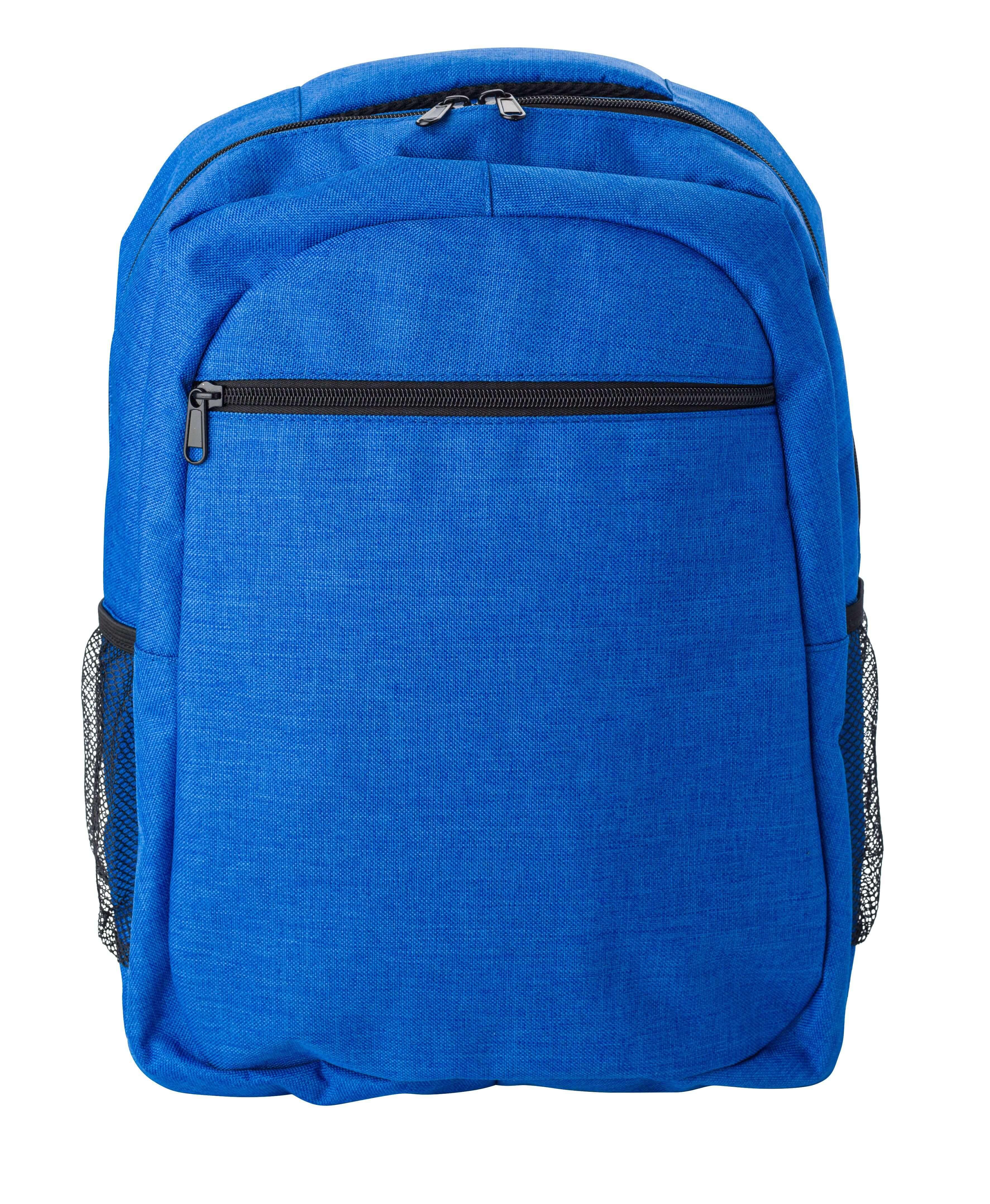Mochila de poliéster (600D) com bolso frontal com fecho de correr e alças ajustáveis. Bolso interno para laptop de até 15 polegadas. Bolso de malha em 2 lados.