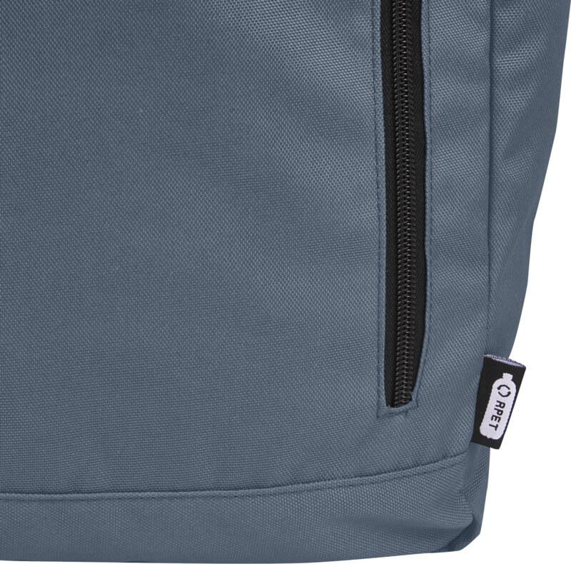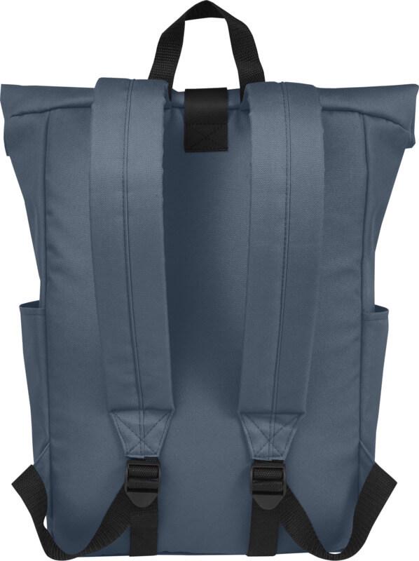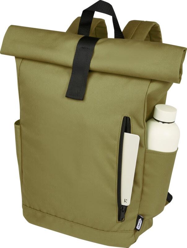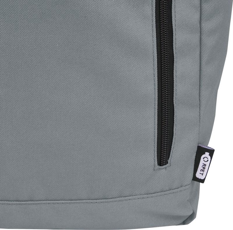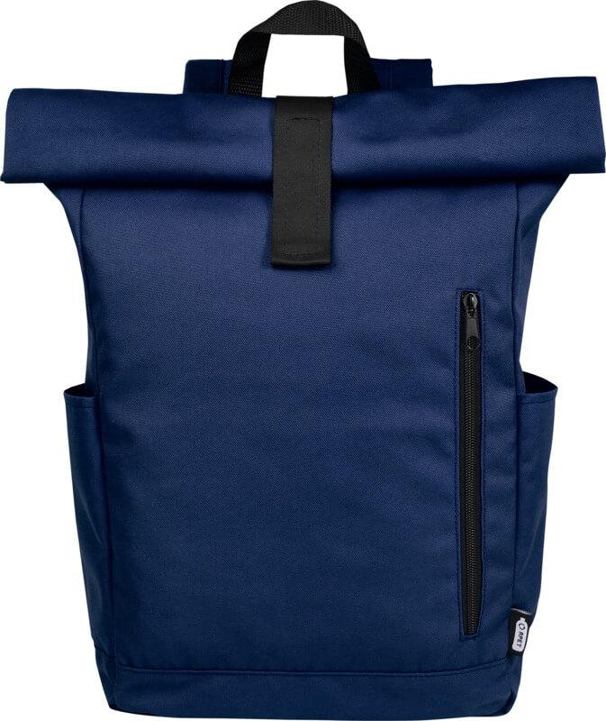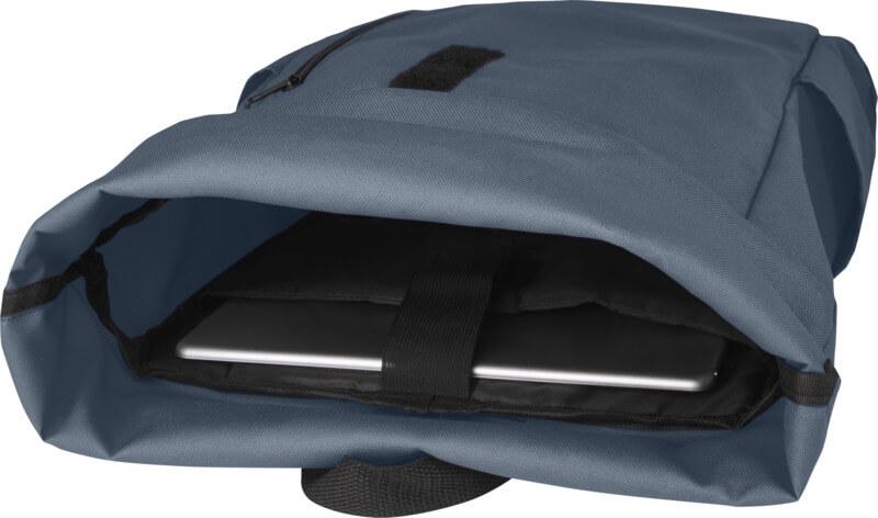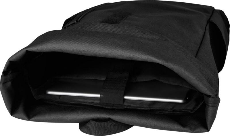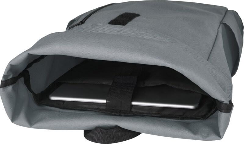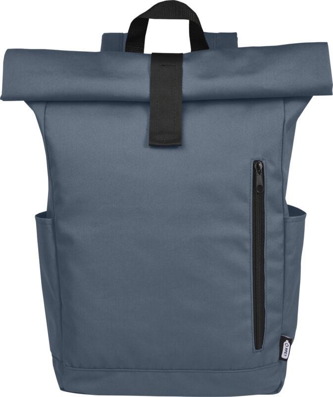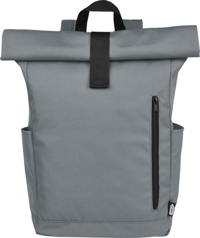 Mochila de topo dobrável prática, resistente e repelente de água, feita de poliéster reciclado GRS, com um grande compartimento interno com um compartimento para portátil de 15,6 pol., um bolso frontal com fecho e 2 bolsos laterais. Encosto acolchoado, alças de ombro ajustáveis e acolchoadas, alça de transporte e prático fecho de enrolar com sistema de fecho na parte superior. O saco perfeito para uso diário, com uma pegada ecológica mínima.