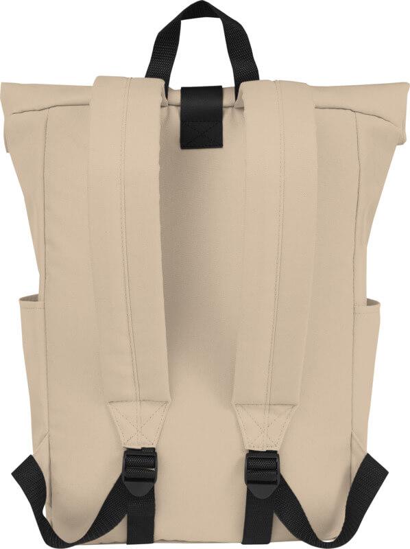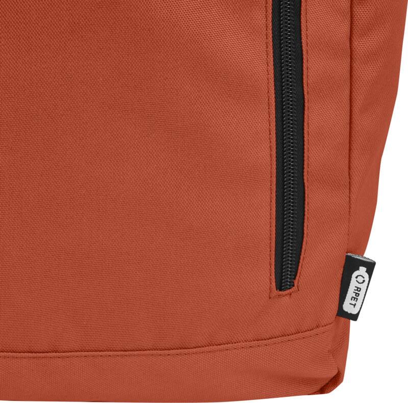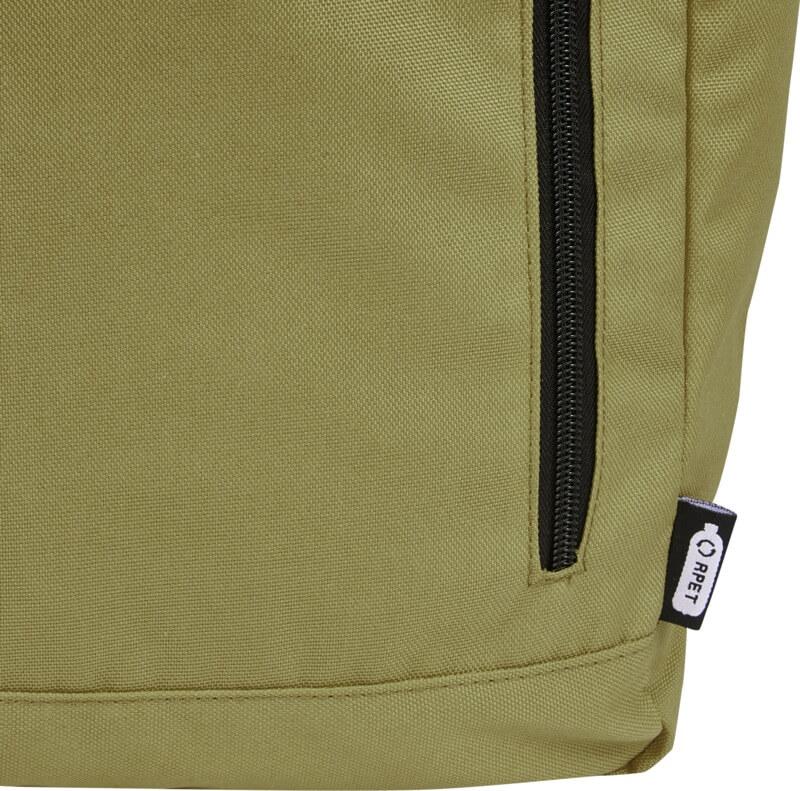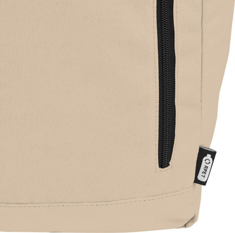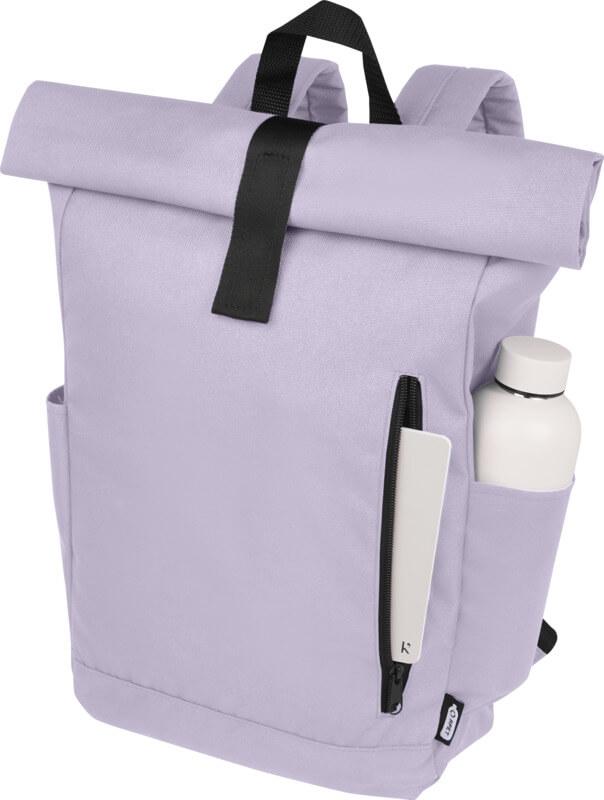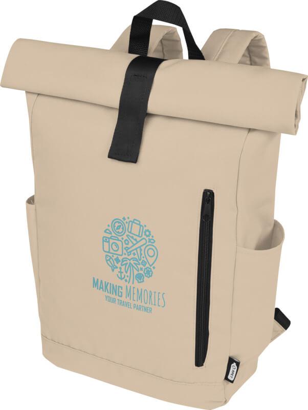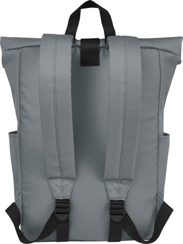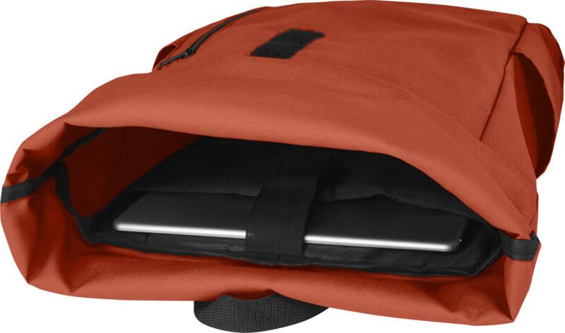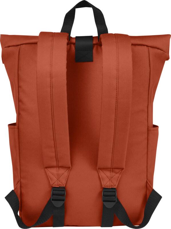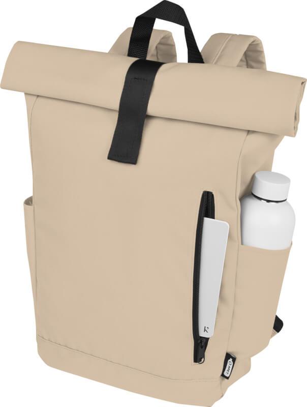 Mochila de topo dobrável prática, resistente e repelente de água, feita de poliéster reciclado GRS, com um grande compartimento interno com um compartimento para portátil de 15,6 pol., um bolso frontal com fecho e 2 bolsos laterais. Encosto acolchoado, alças de ombro ajustáveis e acolchoadas, alça de transporte e prático fecho de enrolar com sistema de fecho na parte superior. O saco perfeito para uso diário, com uma pegada ecológica mínima.
