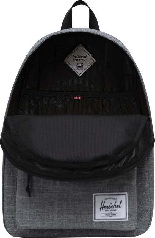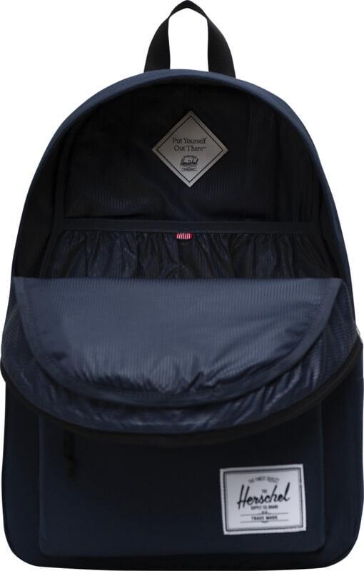 Prepare-se para a sua próxima aventura com a mochila “Herschel Classic™”, proporcionando amplo espaço para todos os seus itens essenciais. A mochila é cuidadosamente fabricada com materiais “EcoSystem™” 100% sustentáveis, garantindo que possa aventurar-se de consciência tranquila. O tecido 600D é fabricado a partir de garrafas de água pós-consumo 100% recicladas, oferecendo uma durabilidade excepcional. Dentro da mochila encontrará uma capa acolchoada amovível que proporciona um ajuste seguro para o seu portátil de 15″/16″. As alças de ombro ajustáveis e acolchoadas garantem o conforto durante viagens longas. A mochila inclui um bolso próprio para a garrafa de água e um bolso frontal que lhe permite guardar facilmente objetos pequenos. Com uma capacidade volumosa de 26 litros, a mochila “Herschel Classic™” é a companhia ideal para qualquer aventura.