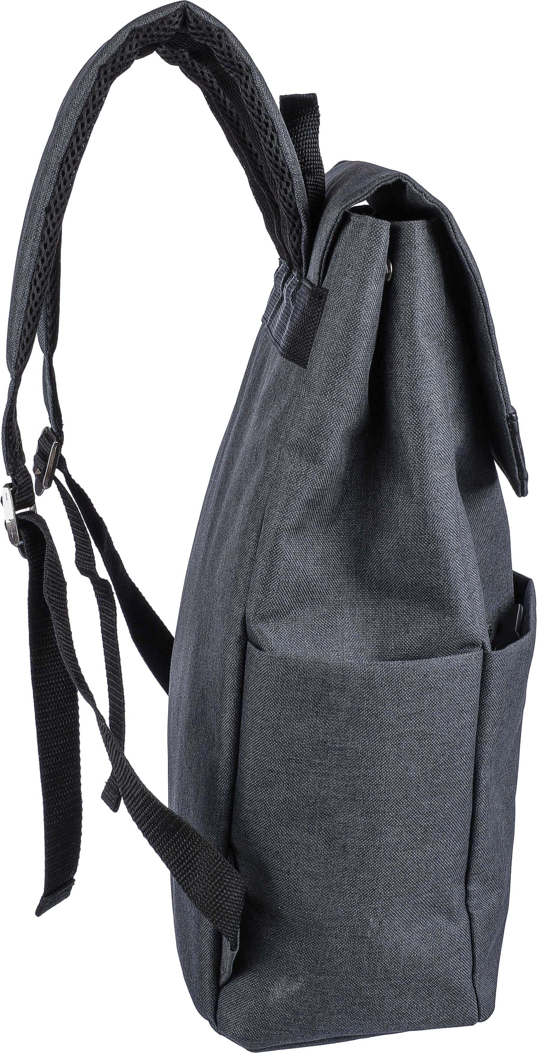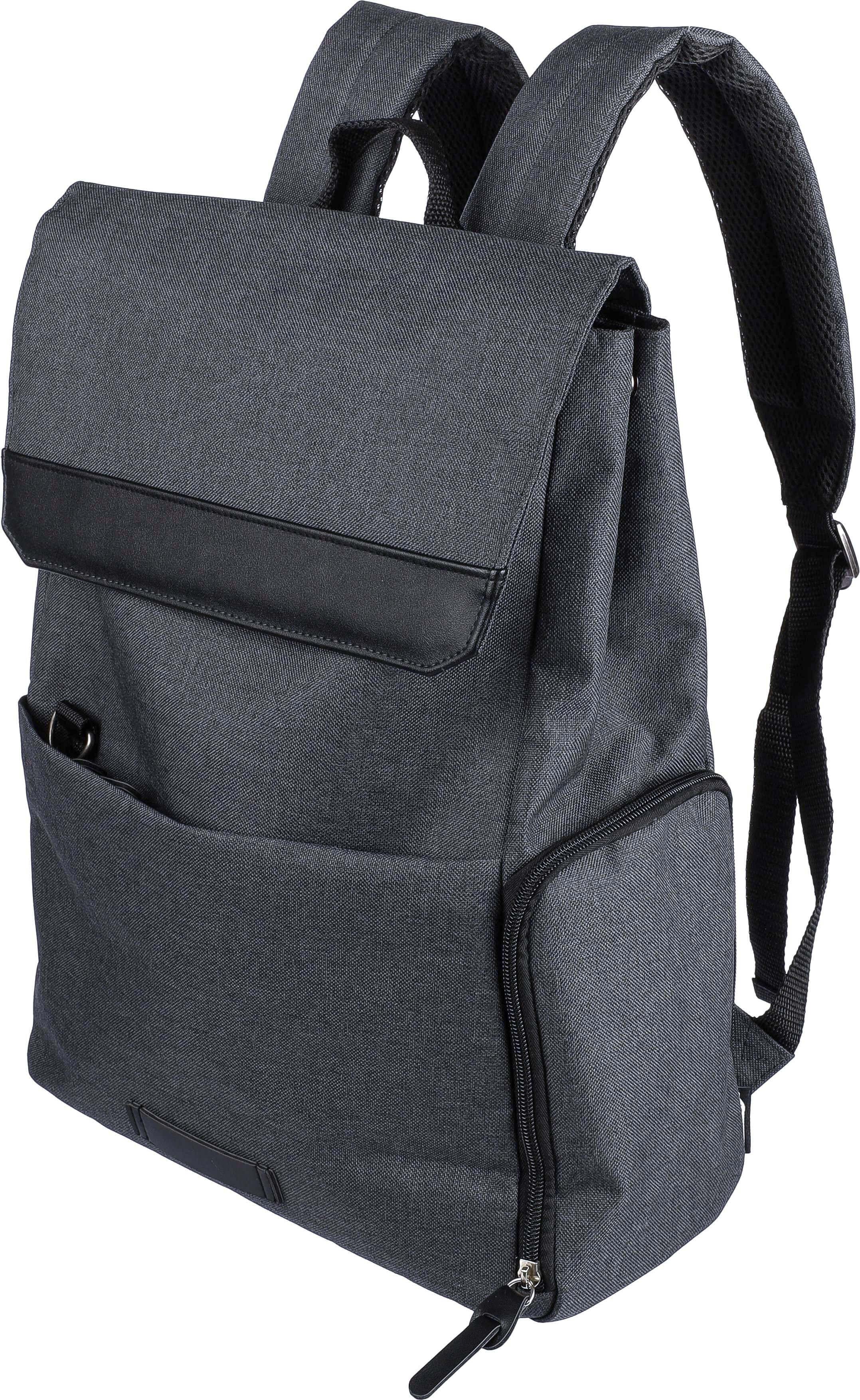 Mochila para portátil em lona de poliéster 600D (15 polegadas) com detalhe em PVC e forro 210D. Inclui um pequeno bolso frontal com fecho de correr com mosquetão para chaves, um compartimento lateral com fecho de correr, um bolso lateral normal e um grande compartimento com fecho magnético com um bolso para portátil. Botões de pressão na parte lateral para fechar a mochila quando não estiver totalmente cheia. Alças ajustáveis e respiráveis. Inclui uma etiqueta rPET na parte da frente.