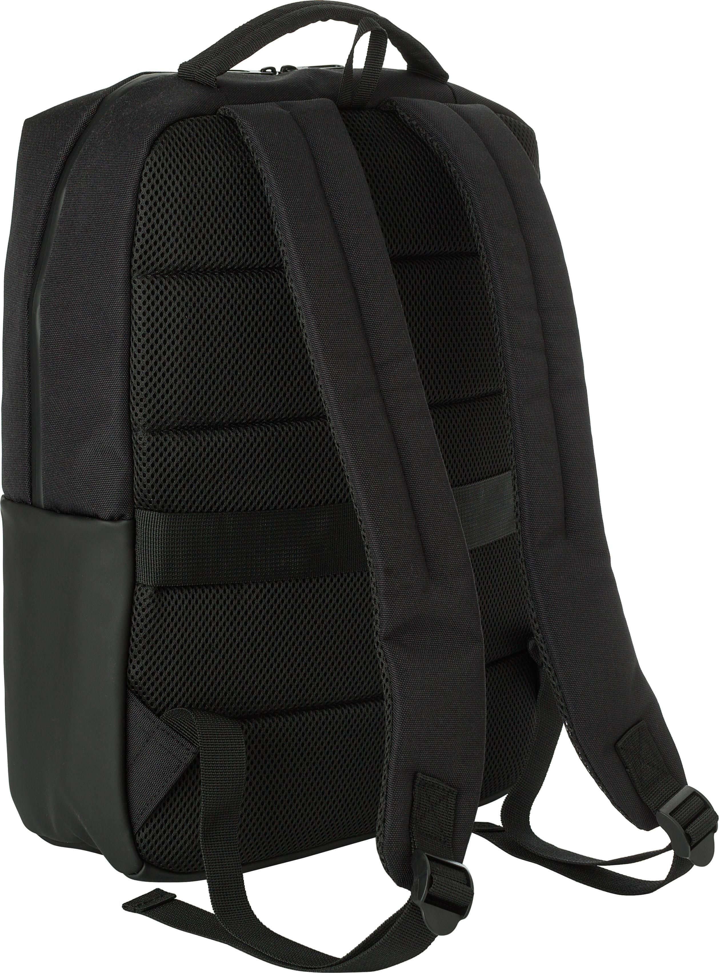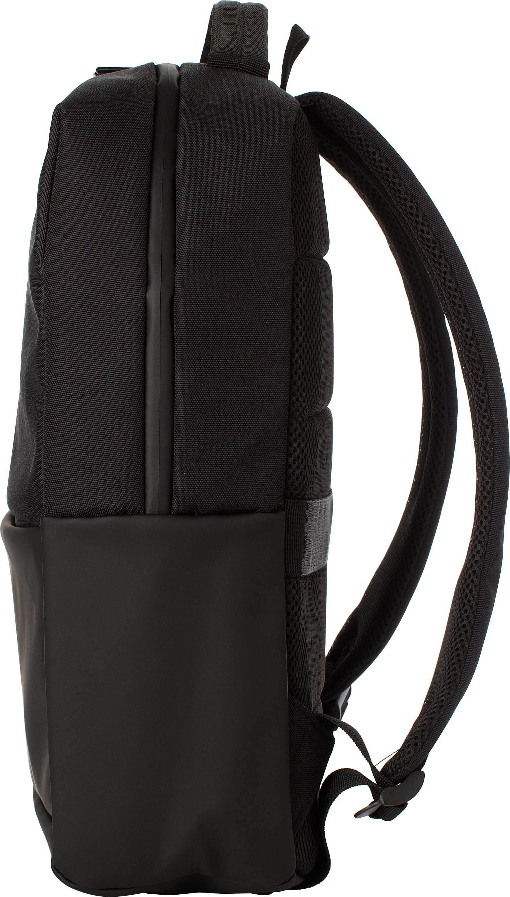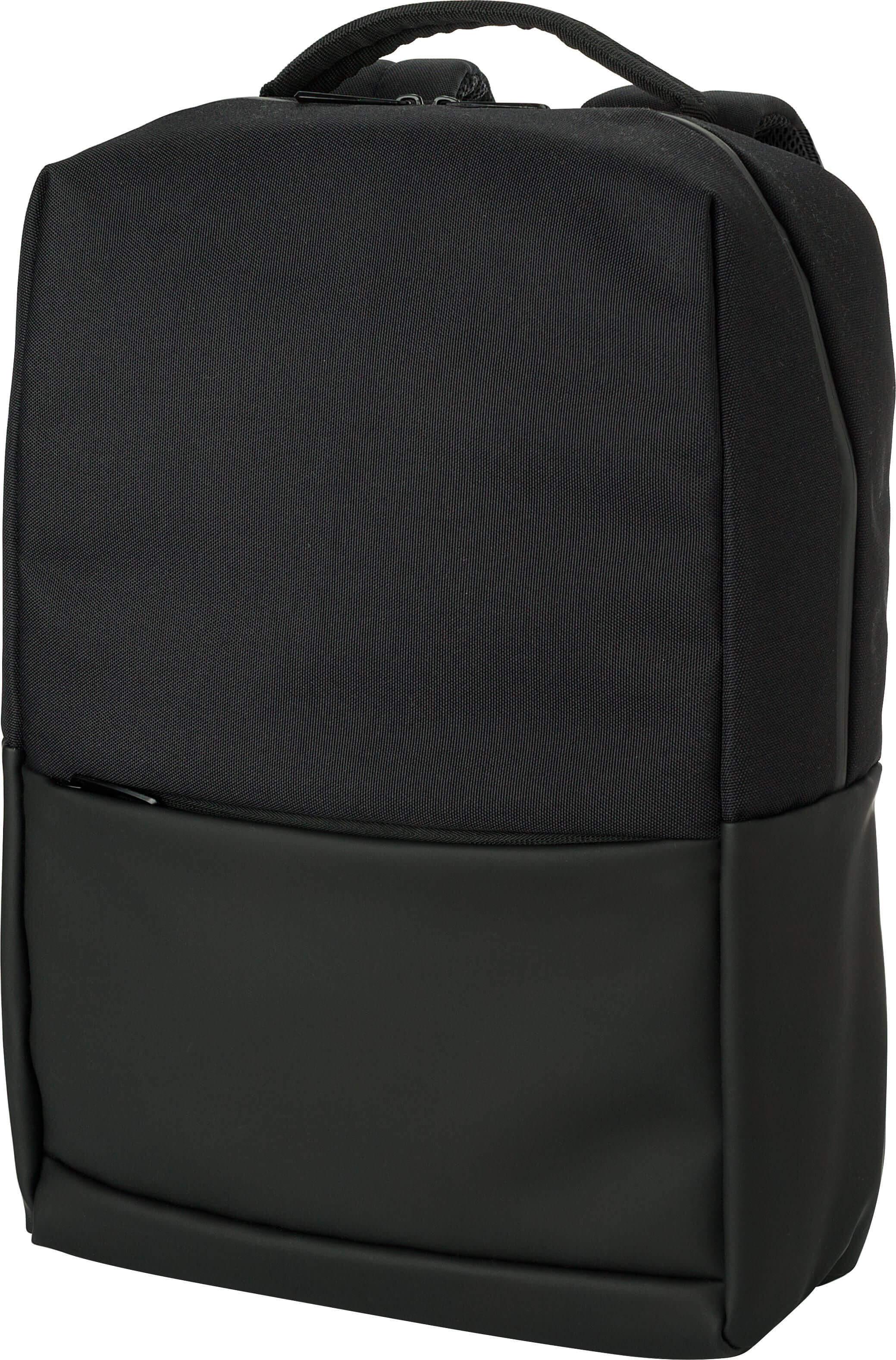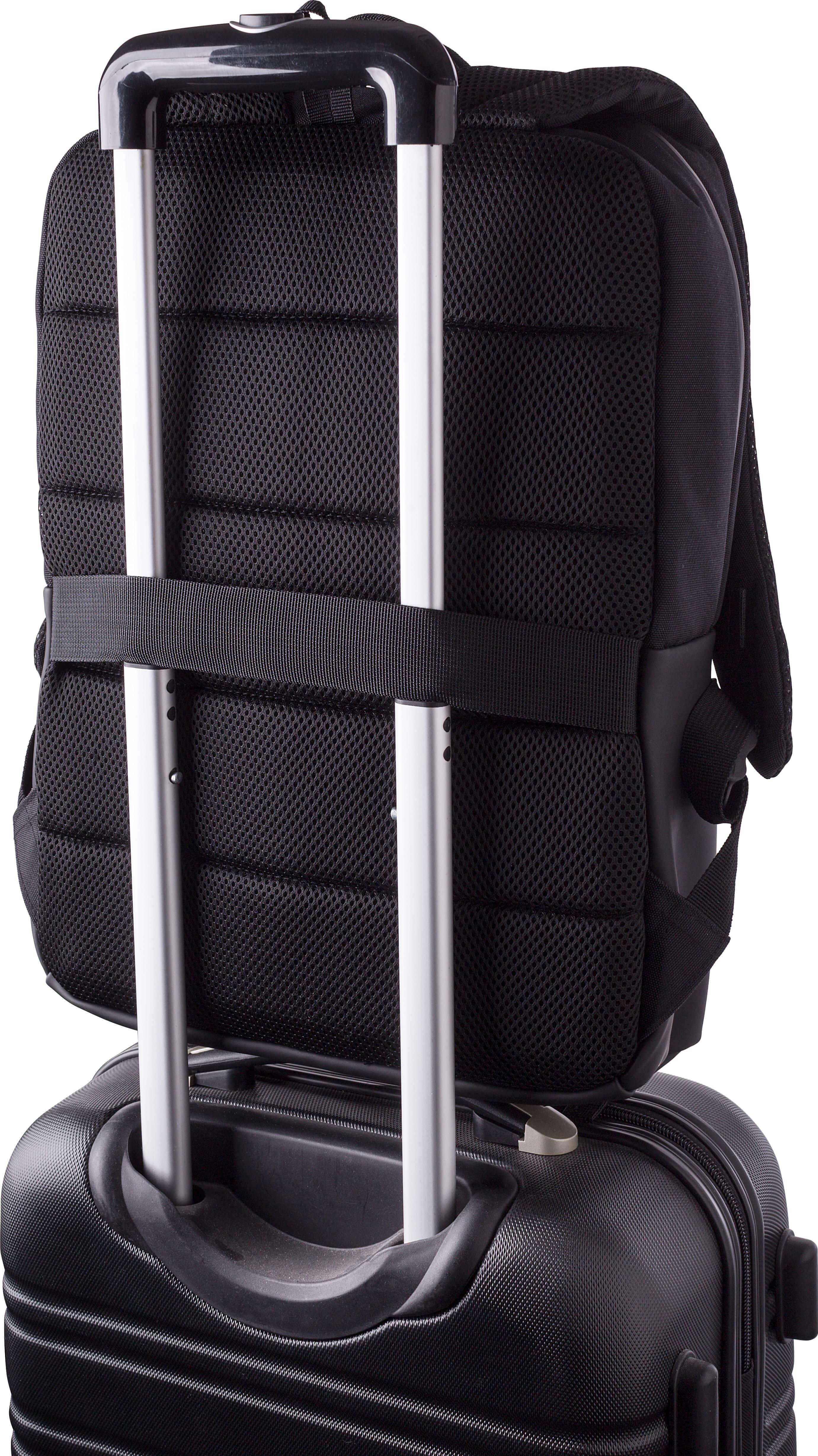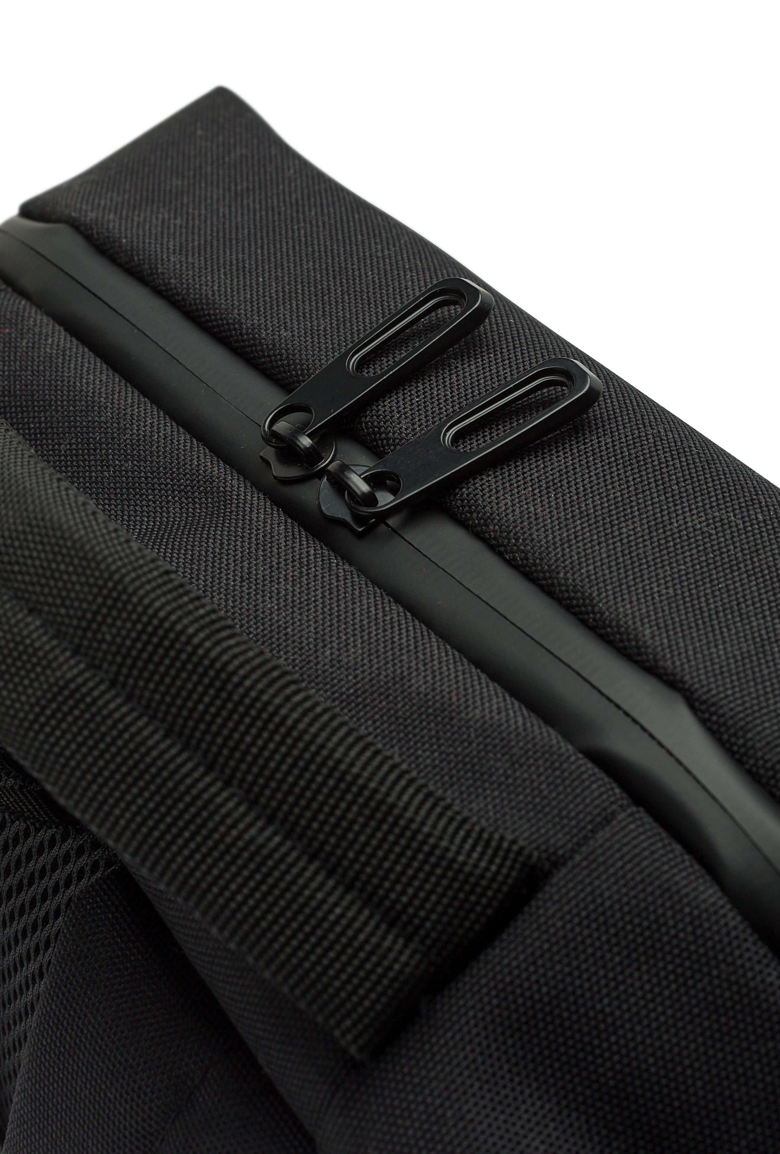 Mochila para computador portátil (15’’) em poliéster (600D). Grande compartimento com fecho de correr na parte superior com vários compartimentos no interior. Pequeno compartimento com fecho na parte da frente. Costas reforçadas e alças de ombro ajustáveis e cinta de fixação ao trolley.