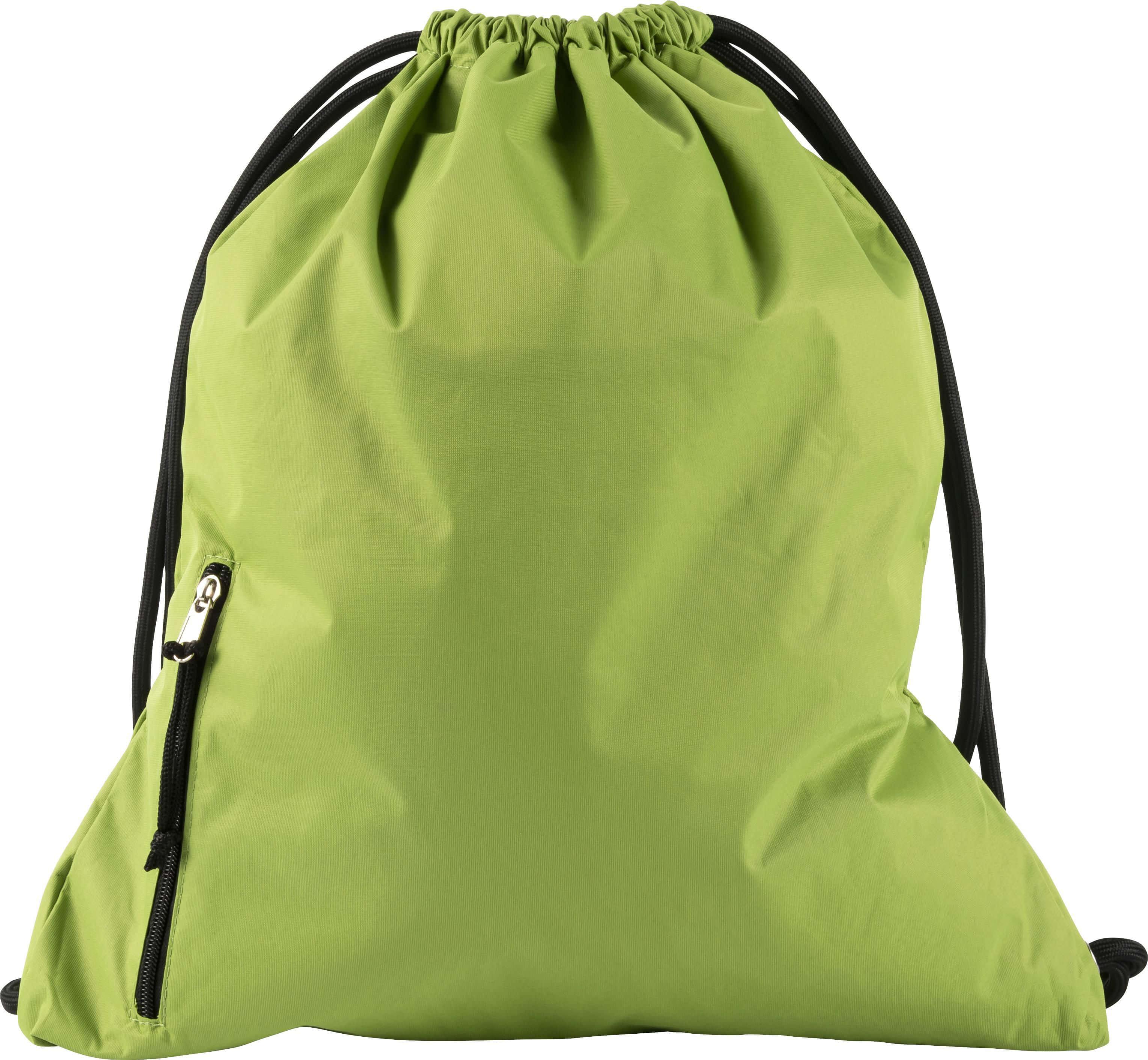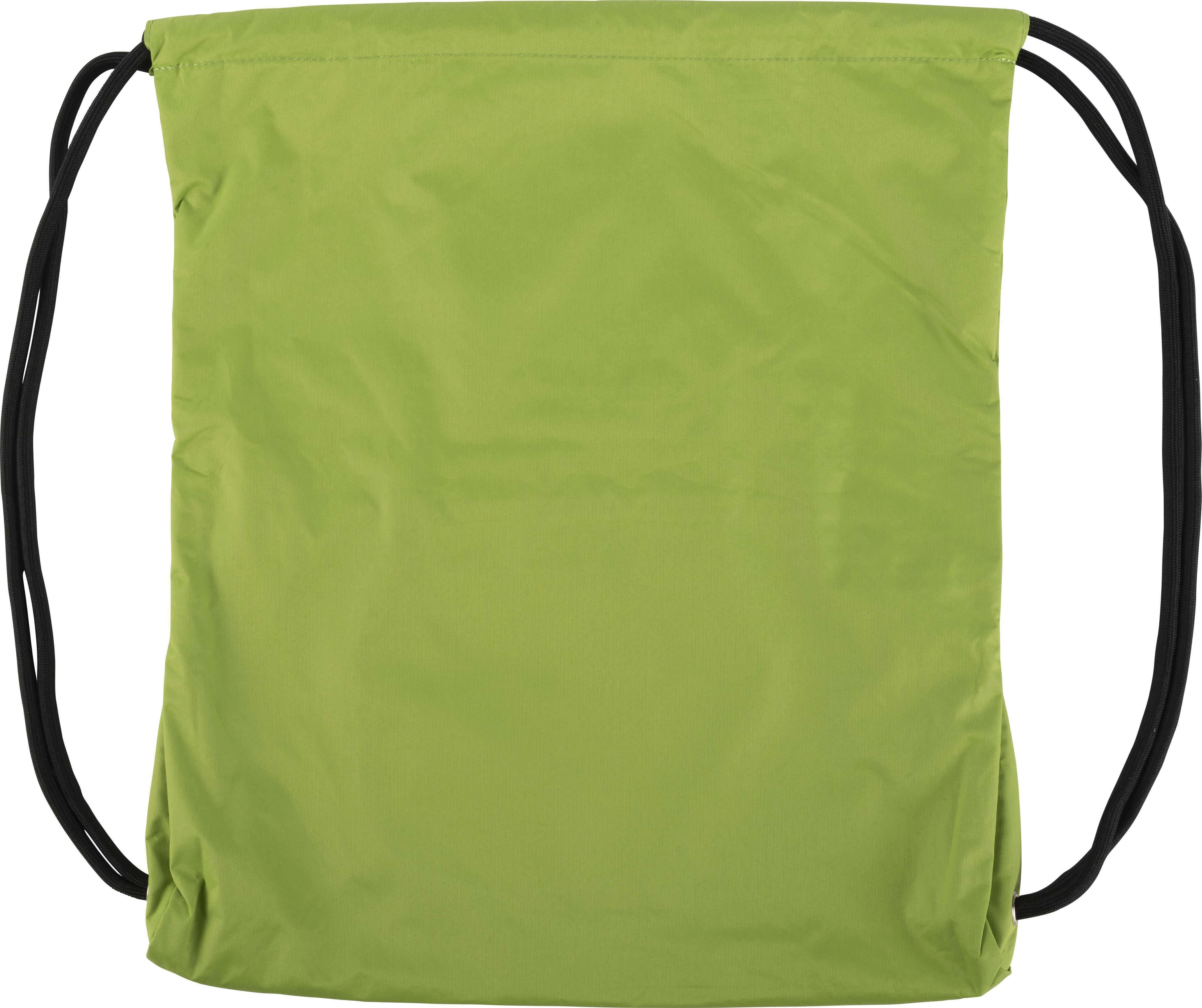 Mochila em pongee repelente à água (190 T) com fecho de cordão grosso. Tem um bolso frontal com fecho de correr.