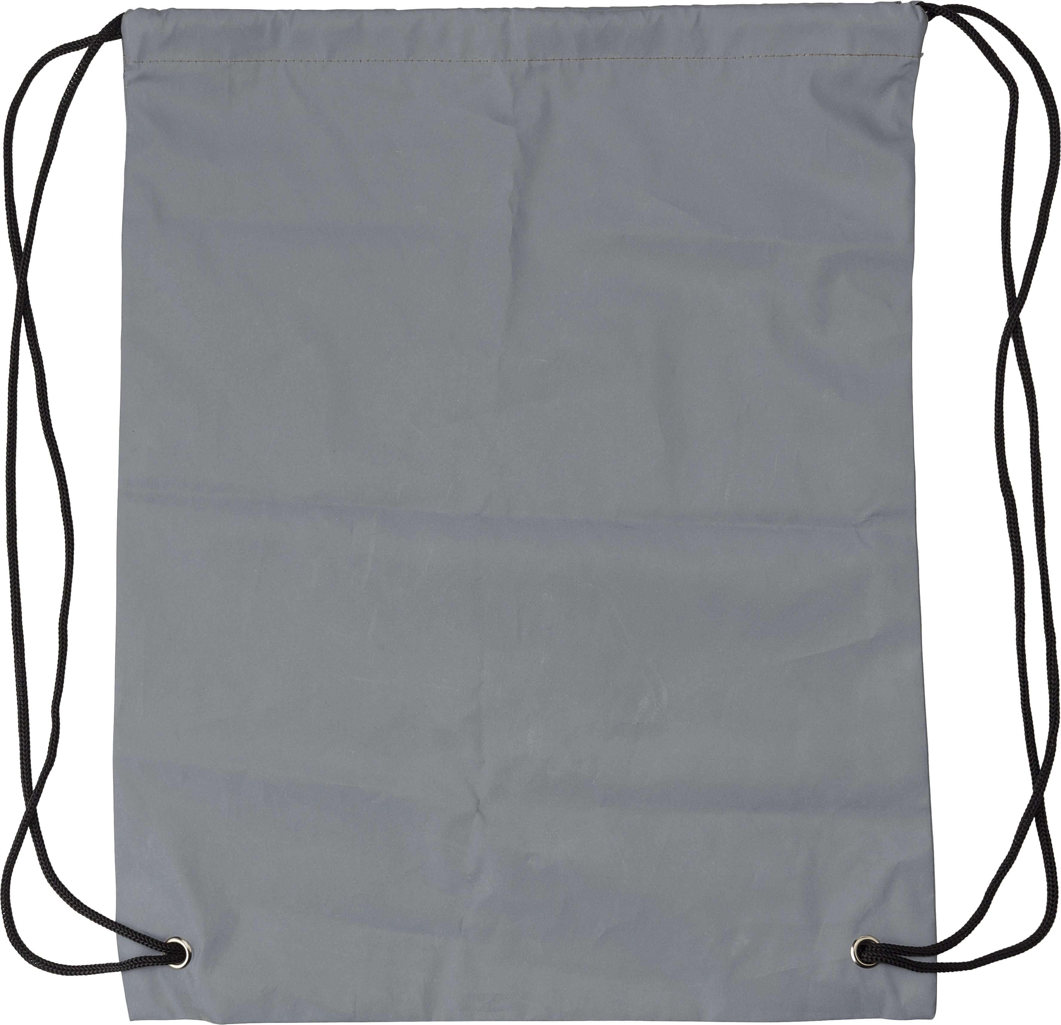 Mochila de cordão de fibra sintética. A mochila inteira é altamente reflectora. Os anéis de fixação são feitos de cobre.