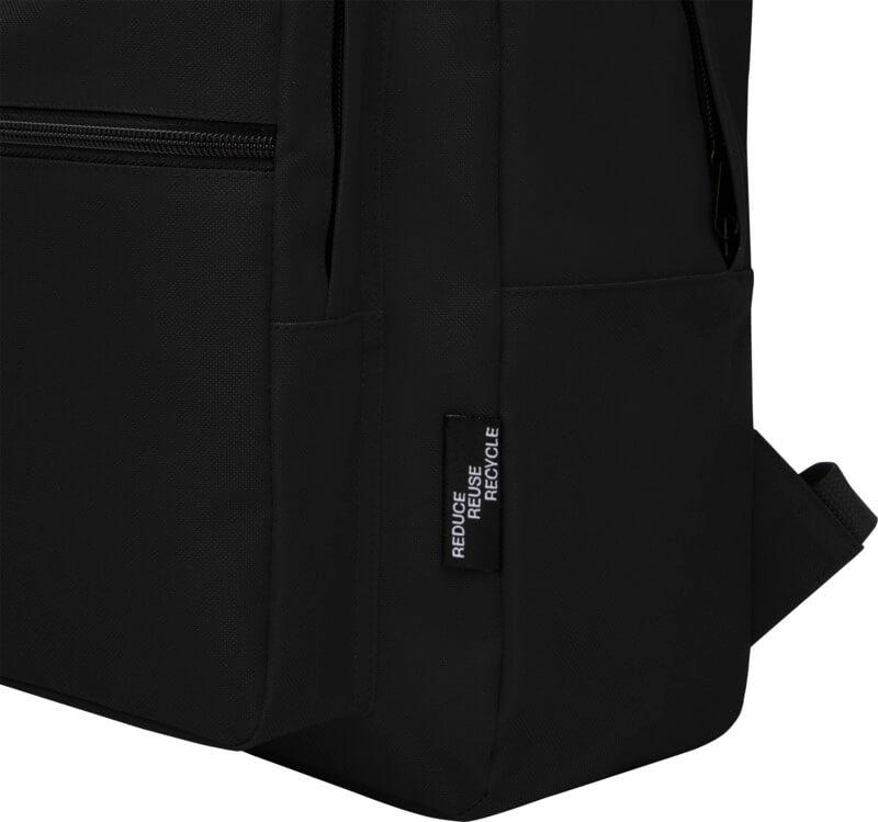 Mochila durável produzida com 100% de plástico reciclado, pós-consumo, que contribui para a redução dos resíduos plásticos. Possui alças de ombro ajustáveis, 2 compartimentos com fecho de correr e um bolso frontal com fecho de correr. Aproximadamente 15 garrafas são recicladas para fazer esta mochila.
