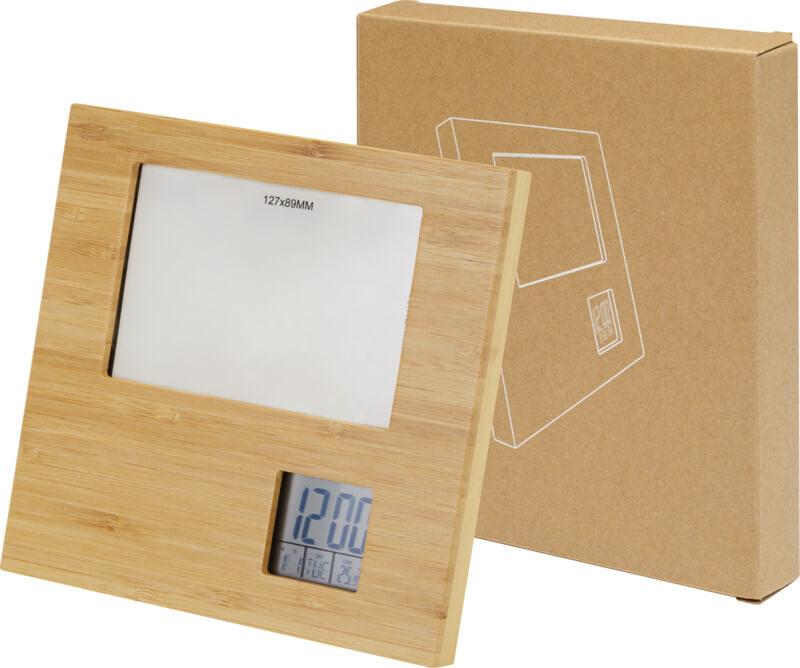 A moldura de bambu “Sasa” com estação meteorológica proporciona um complemento elegante e funcional à sua casa ou escritório. Com uma caixa principal em bambu de origem responsável e uma caixa traseira de plástico reciclado, esta moldura exala elegância natural enquanto promove a sustentabilidade. Os botões de silicone proporcionam uma experiência de utilização confortável e responsiva, enquanto o vidro LCD assegura um ecrã com exibição clara e nítida. Esta moldura também oferece uma gama de funções úteis. No modo normal, exibe a hora, o mês, a data, o dia da semana e a temperatura. Também possui uma função de alarme/pausa para ajudá-lo a começar o seu dia a tempo. O modo de lembrete de aniversário permite-lhe manter o controlo de datas importantes, enquanto o modo de temporizador é perfeito para cronometrar tarefas ou atividades. Além disso, o modo de apreciação musical oferece uma seleção de até 7 músicas opcionais para sua diversão. Inclui 2 pilhas AA. Entregue com manual de instruções numa caixa de presente de papel kraft.