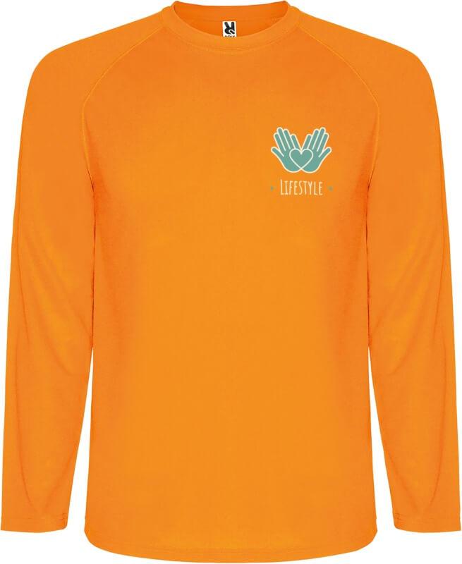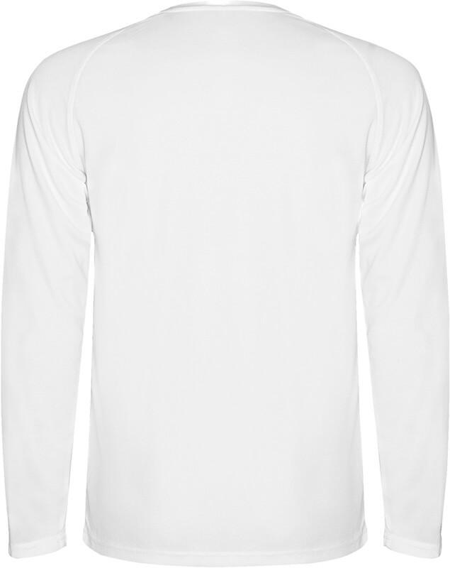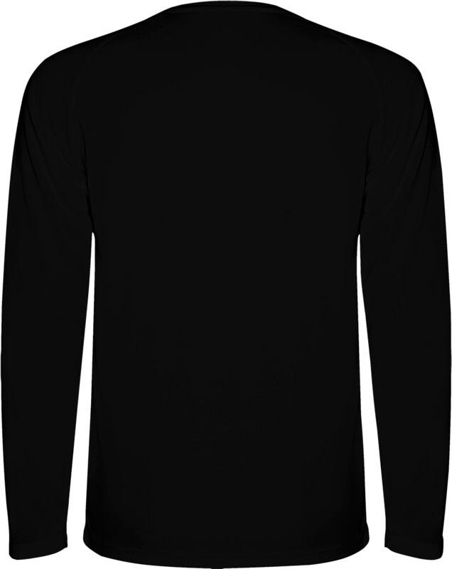 T-shirt técnica de manga comprida raglan. Overlock a condizer nas mangas (sem costuras laterais). Costuras cobertas na gola. Tecido respirável de fácil lavagem e secagem. Etiqueta amovível.