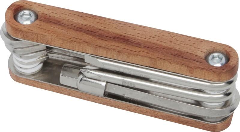 Multi-ferramenta para bicicleta compacta, robusta e durável em aço inoxidável de alta qualidade com cabos em madeira de faia. Esta é uma ferramenta imprescindível para todos os amantes de bicicletas, para quando é necessária uma reparação rápida e inesperada. Inclui 8 ferramentas essenciais para bicicletas: chave Allen (2 mm/2,5 mm/3 mm/4 mm/5 mm/5,5 mm/6 mm), chave de fendas Philips e chave de fendas plana. A madeira de faia utilizada é proveniente de fontes sustentáveis, ambiental e socialmente responsáveis. O tamanho quando aberta é 19,5 x 3,6 cm e quando fechada é 9,6 x 3,6 cm. Vem com um manual de instruções e está embalada numa caixa de presente em cartão reciclado com um tamanho de 12 x 4,5 x 4 cm. A gravação a laser é recomendada como uma opção de decoração sustentável.