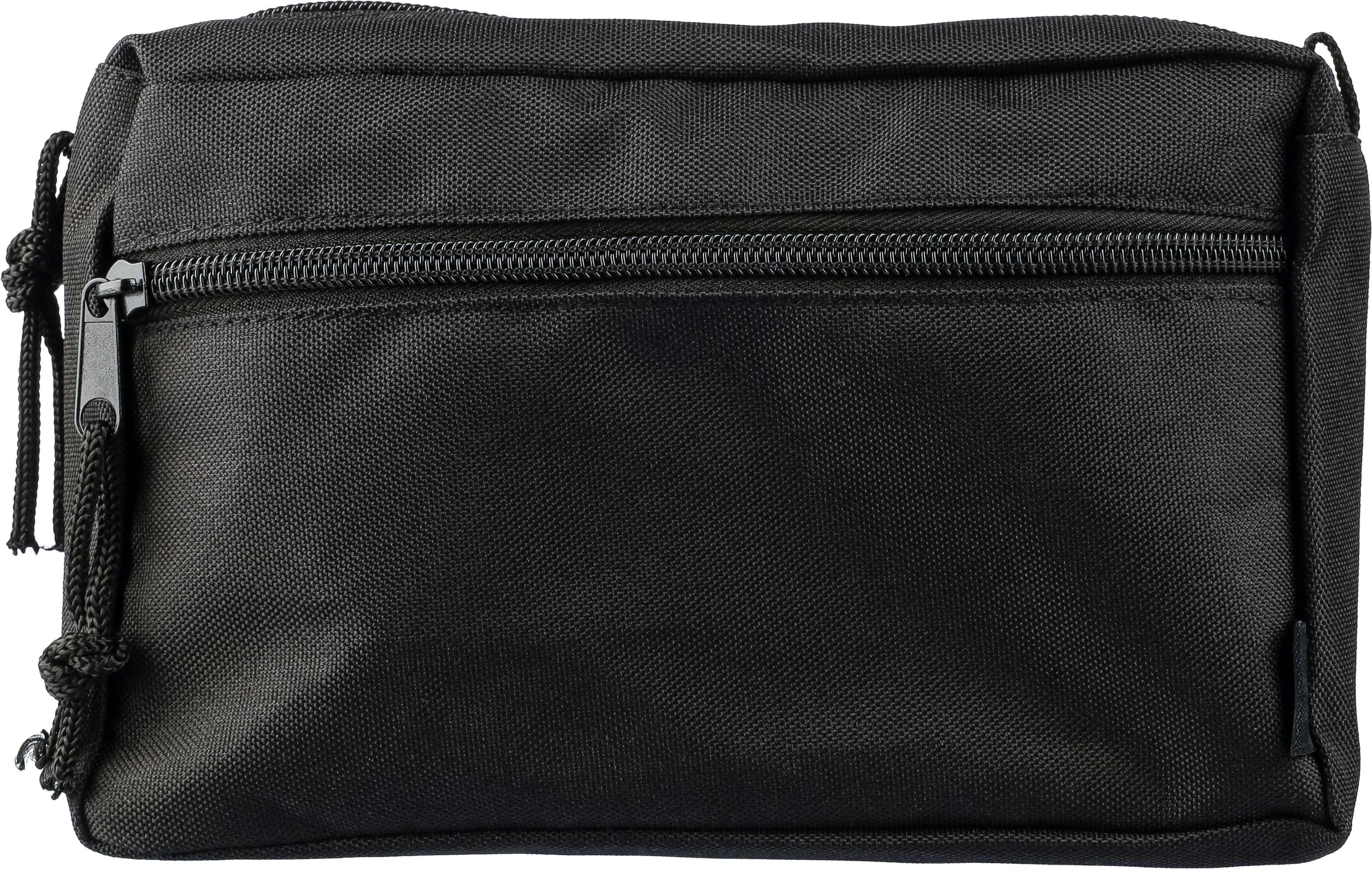 Necessaire rPET com compartimento principal, fecho de correr e bolso frontal.