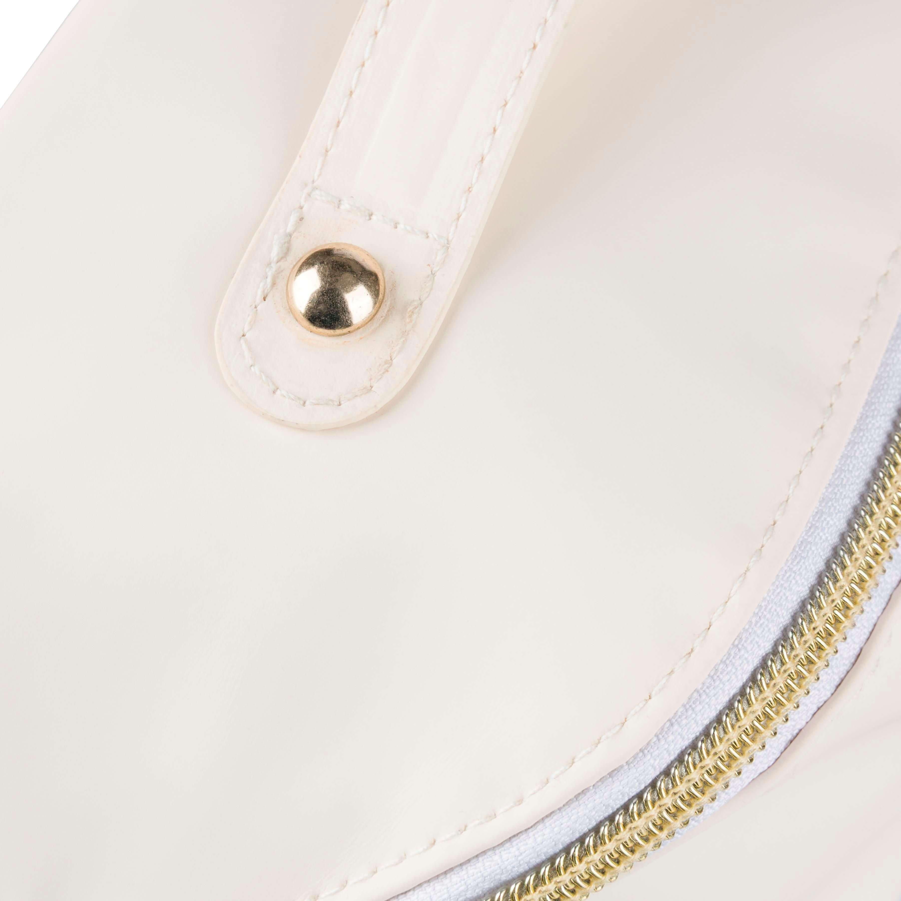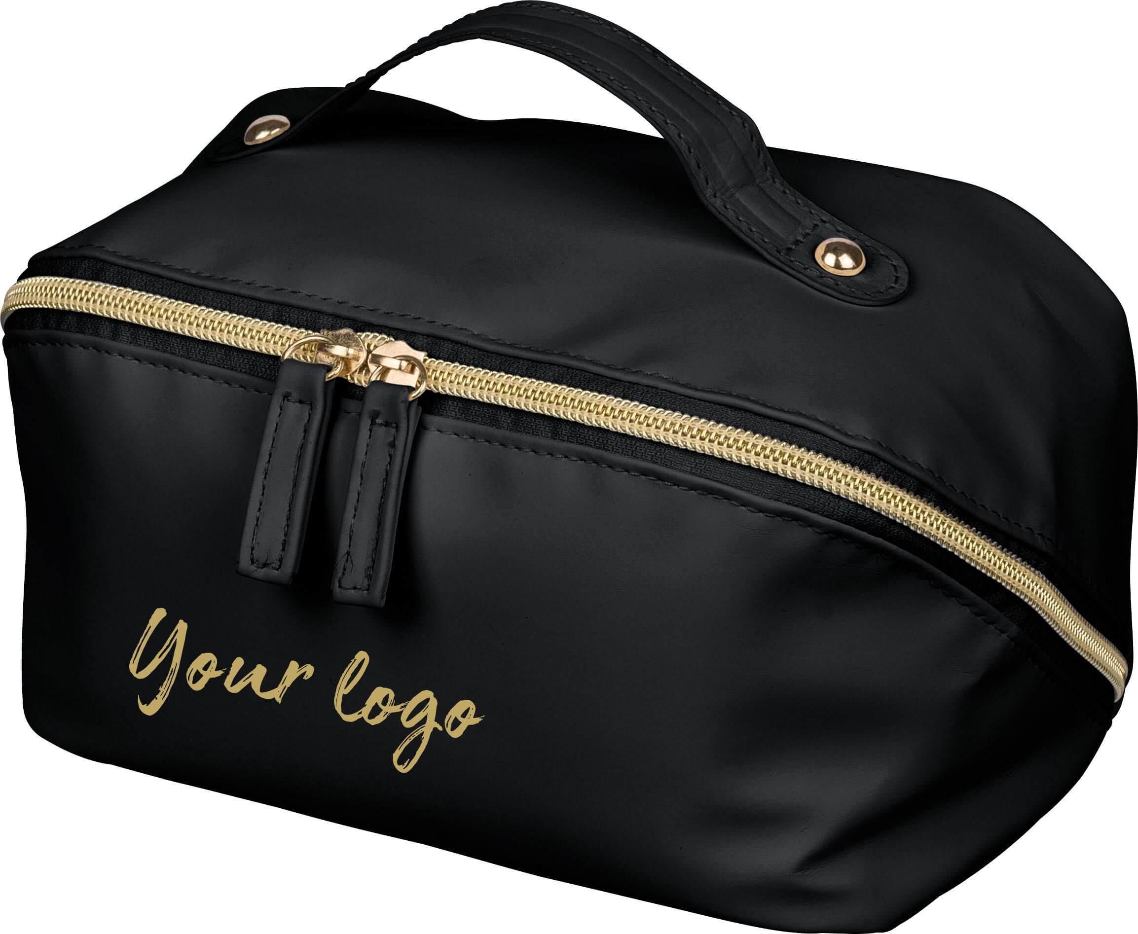 Necessaire com fecho em PU reciclado e fecho central para uma abertura ampla e fácil acesso. Possui uma alça de transporte curta, interior espaçoso com quatro compartimentos, incluindo um pequeno bolso interior com fecho. Acabamento com forro em poliéster reciclado 210D e uma única etiqueta reciclada no interior.