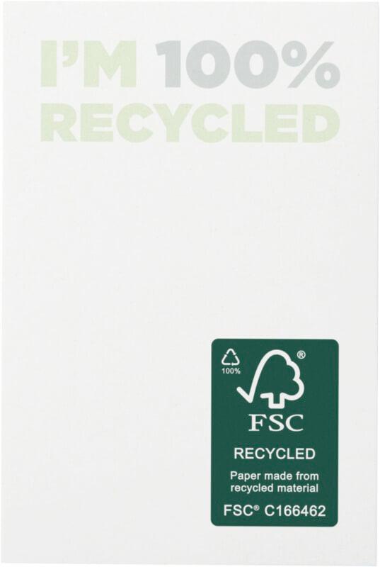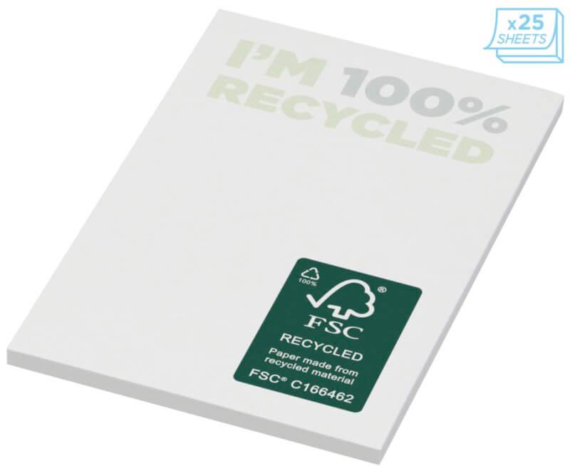 Notas adesivas Sticky-Mate® com papel autoadesivo reciclado de 80 g/m2. Papel de várias cores disponível. Impressão full color disponível em cada folha. 3 opções de numero de folhas (25/50/100 folhas).