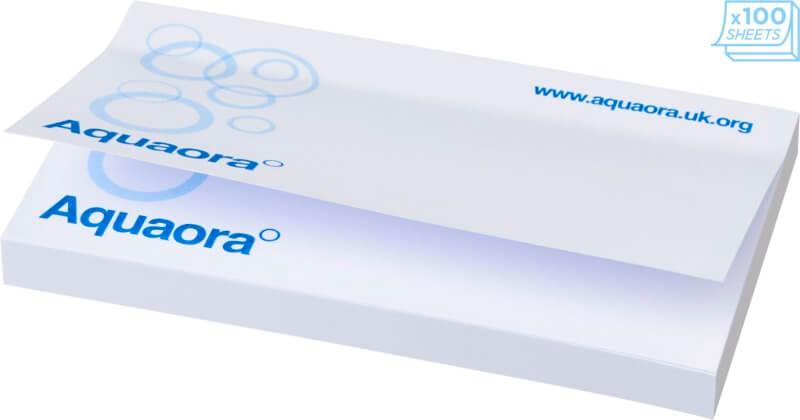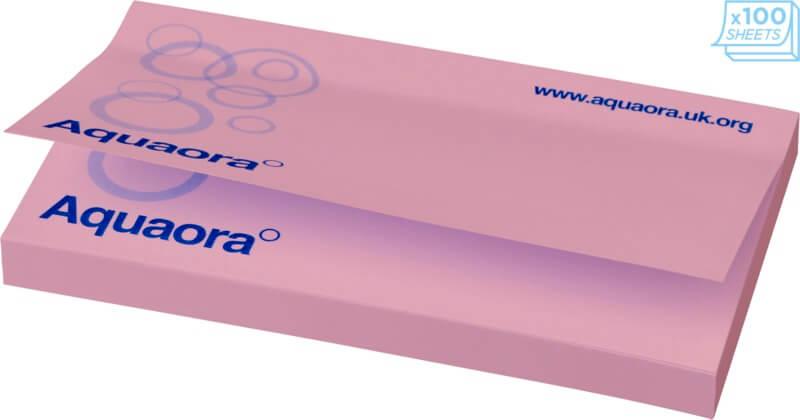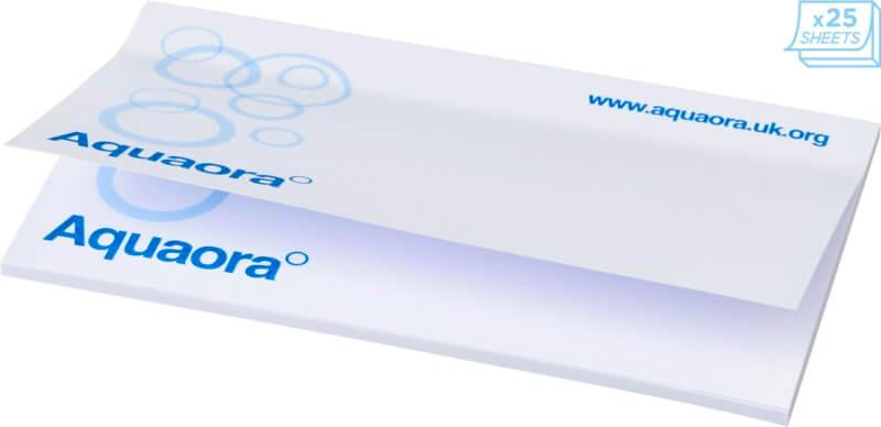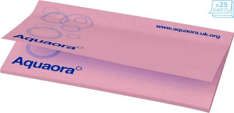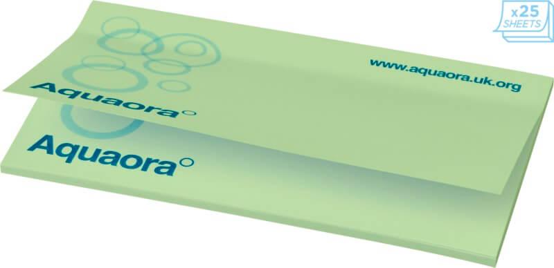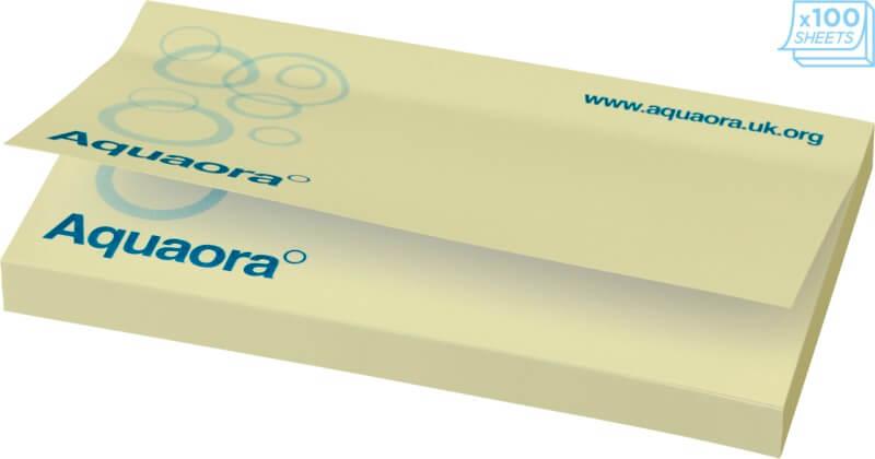 Notas adesivas Sticky-Mate® com papel autoadesivo de 80 g/m2. Papel de várias cores disponível. Impressão full color disponível em cada folha. 3 opções de numero de folhas (25/50/100 folhas).