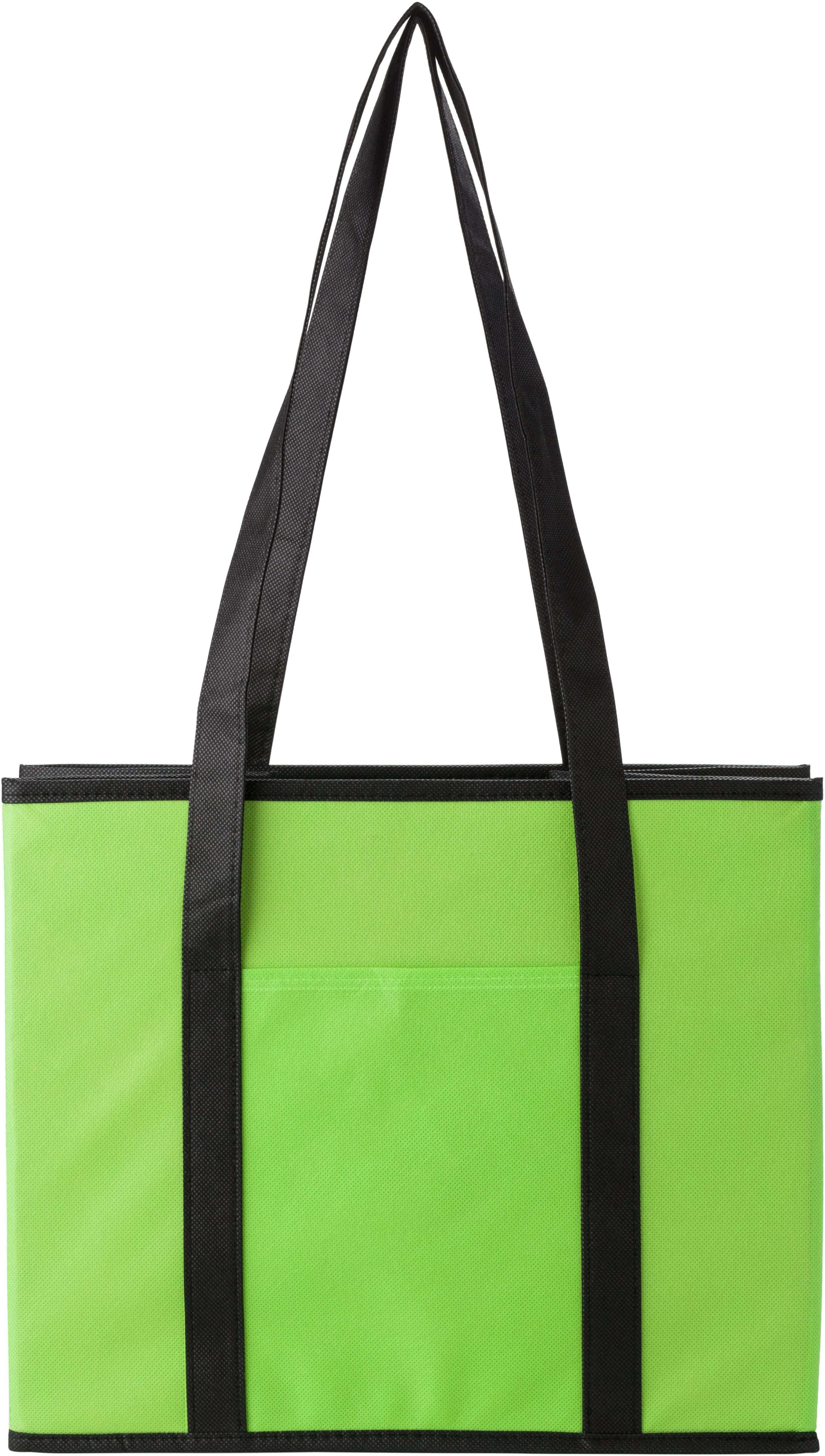 Organizador dobrável para o carro, em non-woven de 80 g / m2. Tem duas alças longas, duas pegas, bolso frontal e a condizer base de papelão.
