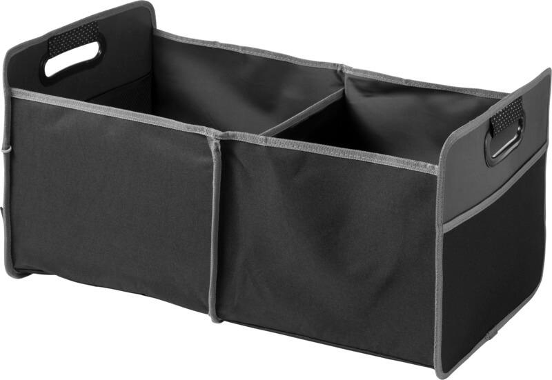 Este organizador de porta-bagagens mantém o seu automóvel limpo e organizado e dobra-se quando não estiver a ser utilizado. Material de poliéster de 600D com dois bolsos exteriores para maior arrumação e dois compartimentos interiores. Pegas acolchoadas para fácil transporte. Embalado com etiqueta STAC. Modelo exclusivo.