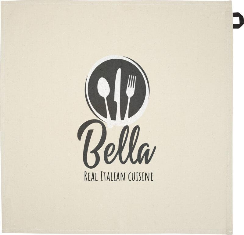 Pano de cozinha feito de 100 % de algodão reciclado de 200 g/m² com certificação GRS, com uma alça contrastante distinta. Tamanho do pano: 50 x 50 cm.