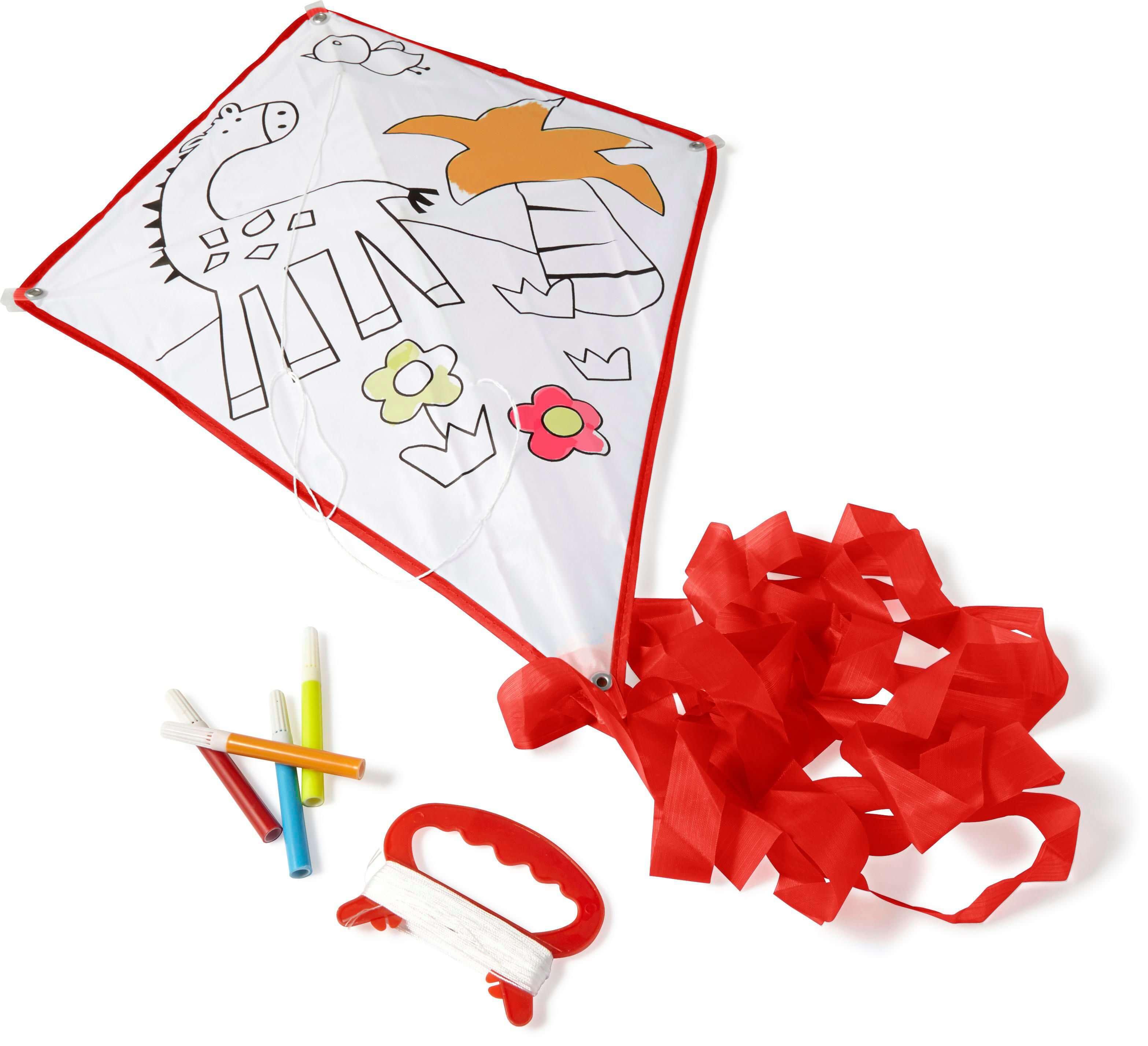 Papagaio em poliéster (190T) para pintar, inclui 4 rotuladores.