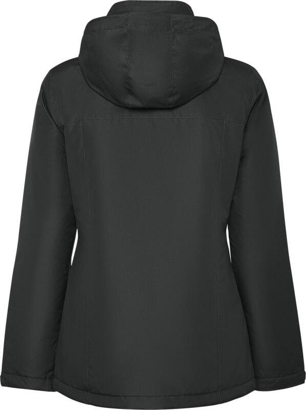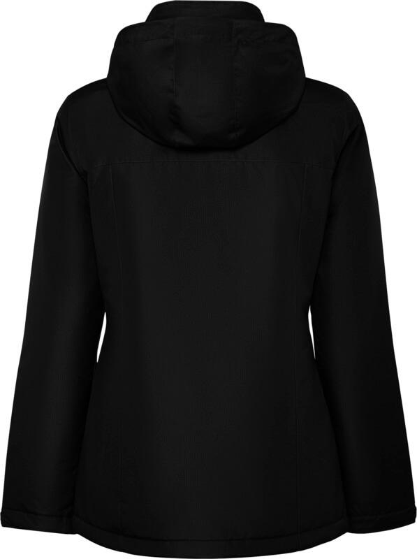Parka acolchoada impermeável para mulher. Ajustada. Gola alta com capuz dobrável e removível com fecho de velcro. Fecho de correr central a condizer, com aba. Bolsos laterais com fecho de correr e aba fixa. Bolso interior com fecho de velcro. Punhos ajustáveis com presilha de velcro. Acesso interior para reforços nas costas e lado esquerdo do peito.