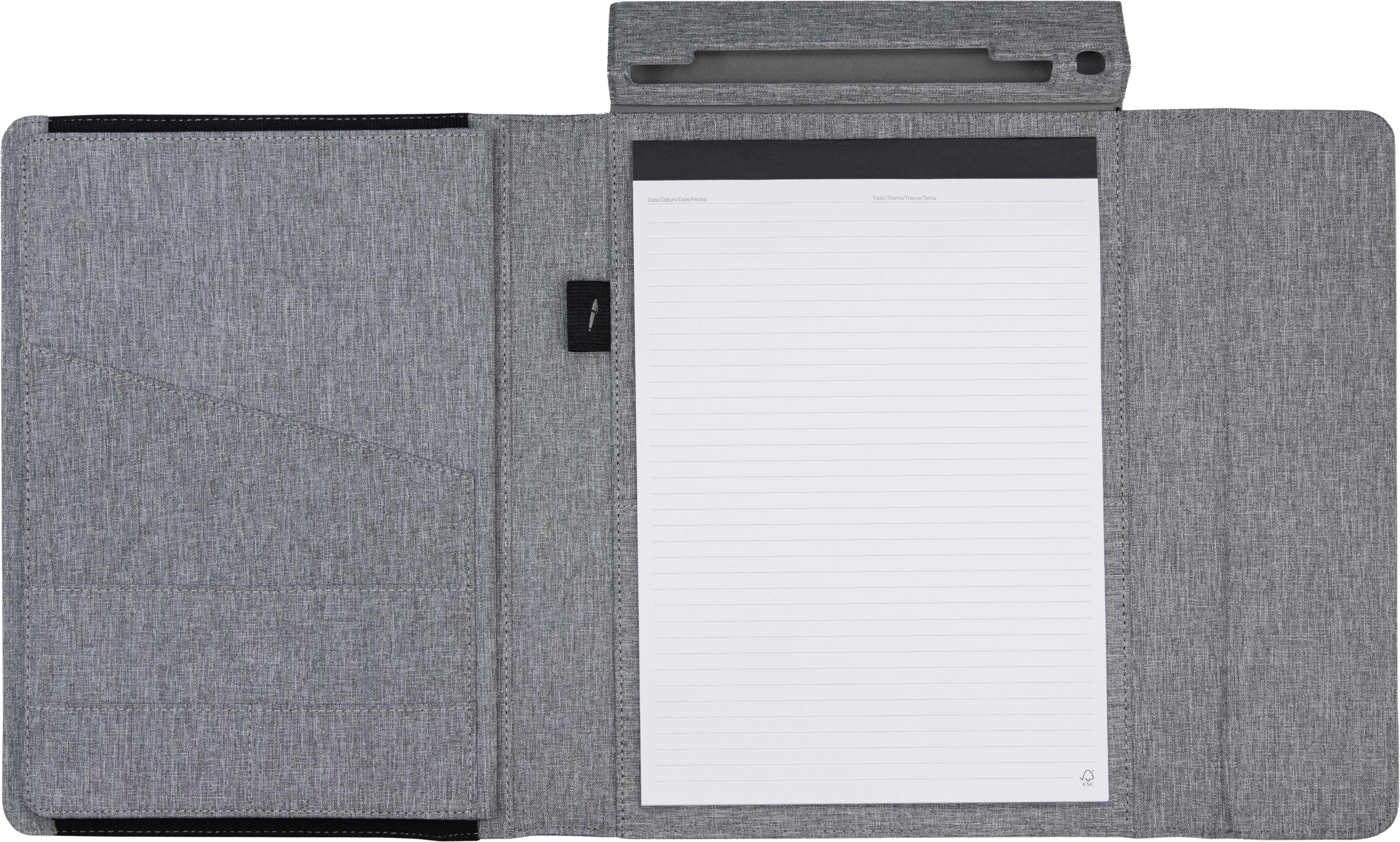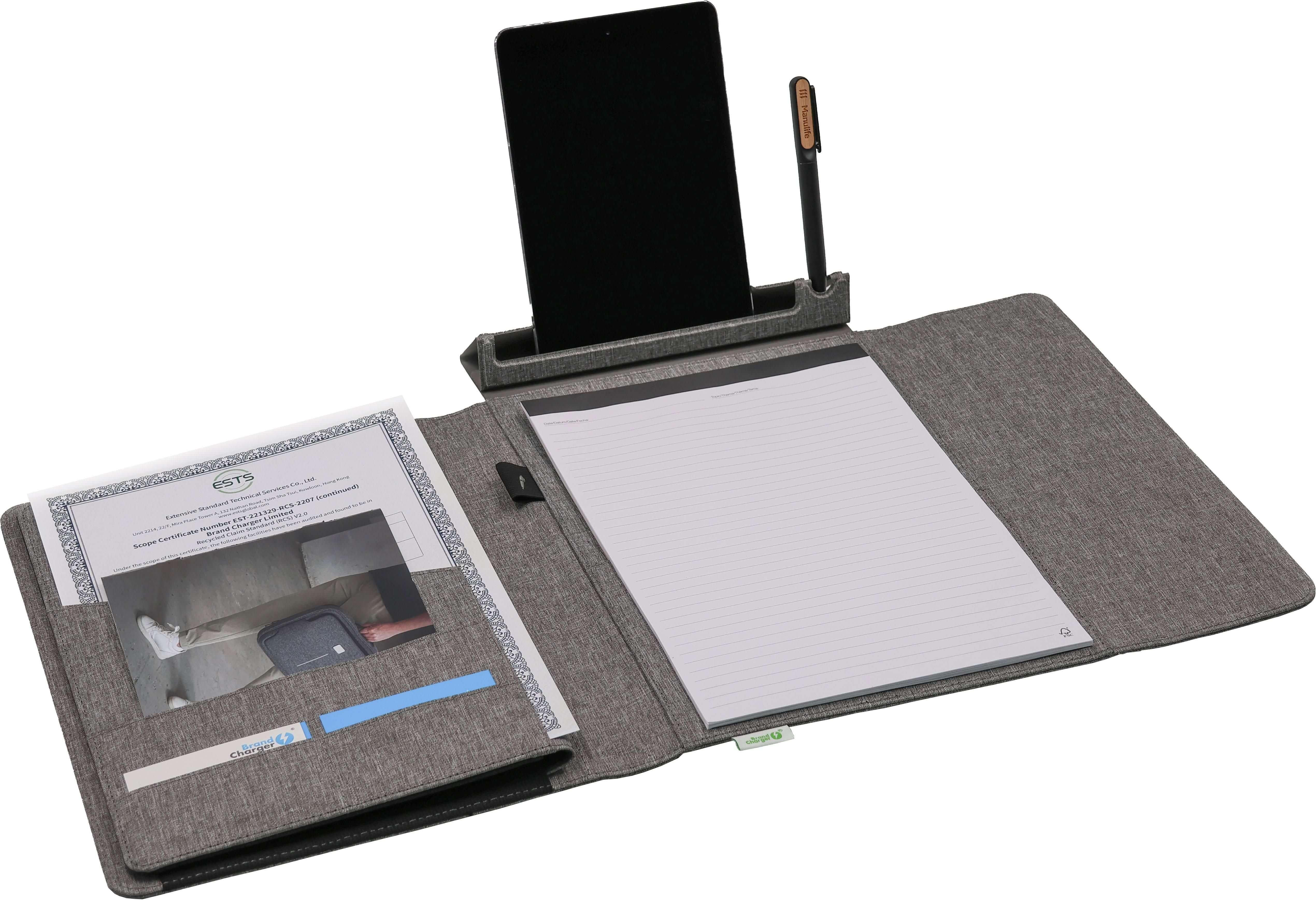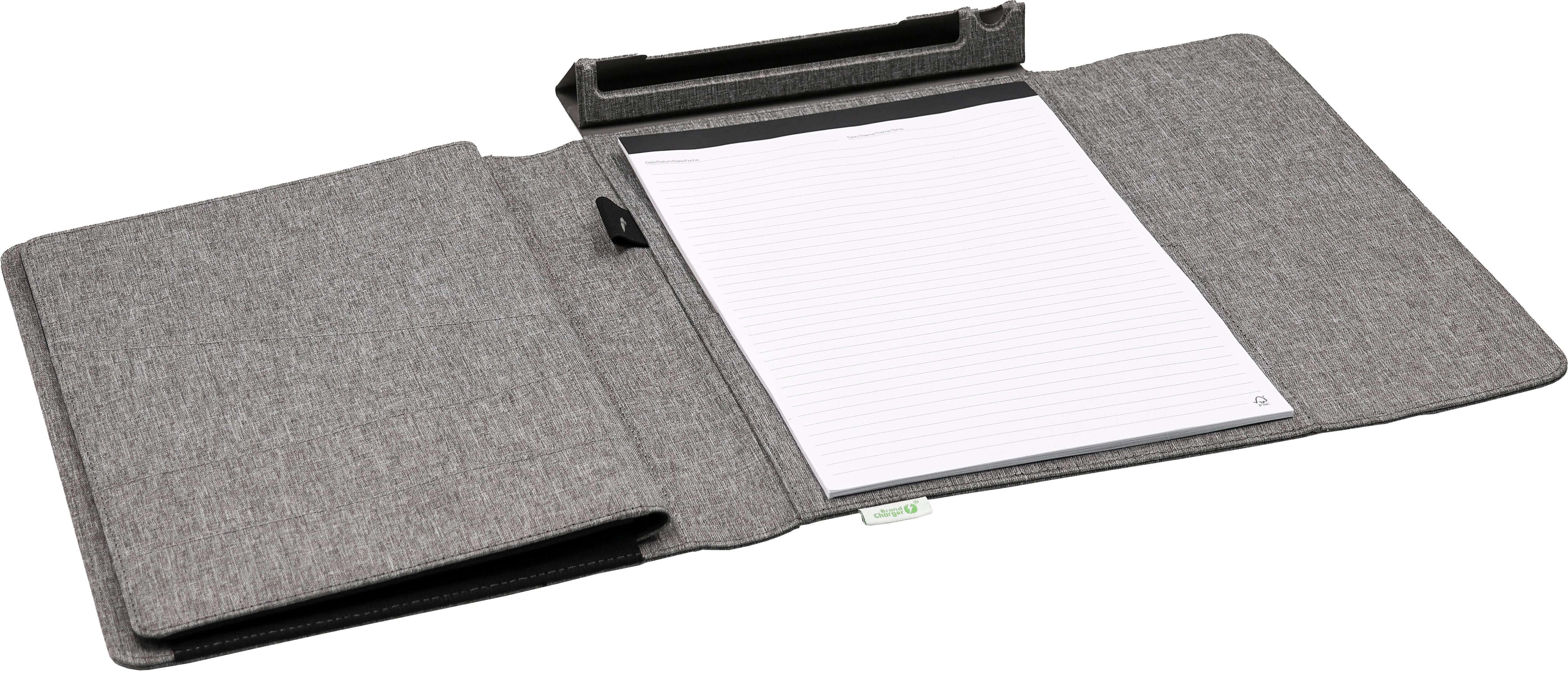 A pasta Noty Folio, fabricada a partir de garrafas PET recicladas e papel, é uma pasta de negócios de qualidade superior perfeita para profissionais ocupados e organizados. Inclui espaço para um bloco de notas A4, uma bolsa para tablet/laptop (até 13″) e compartimentos para objectos essenciais como cartões de visita. Este fólio completo tem um fecho magnético, capa dura e um organizador de secretária desdobrável. Ideal para utilizadores frequentes e profissionais em movimento.